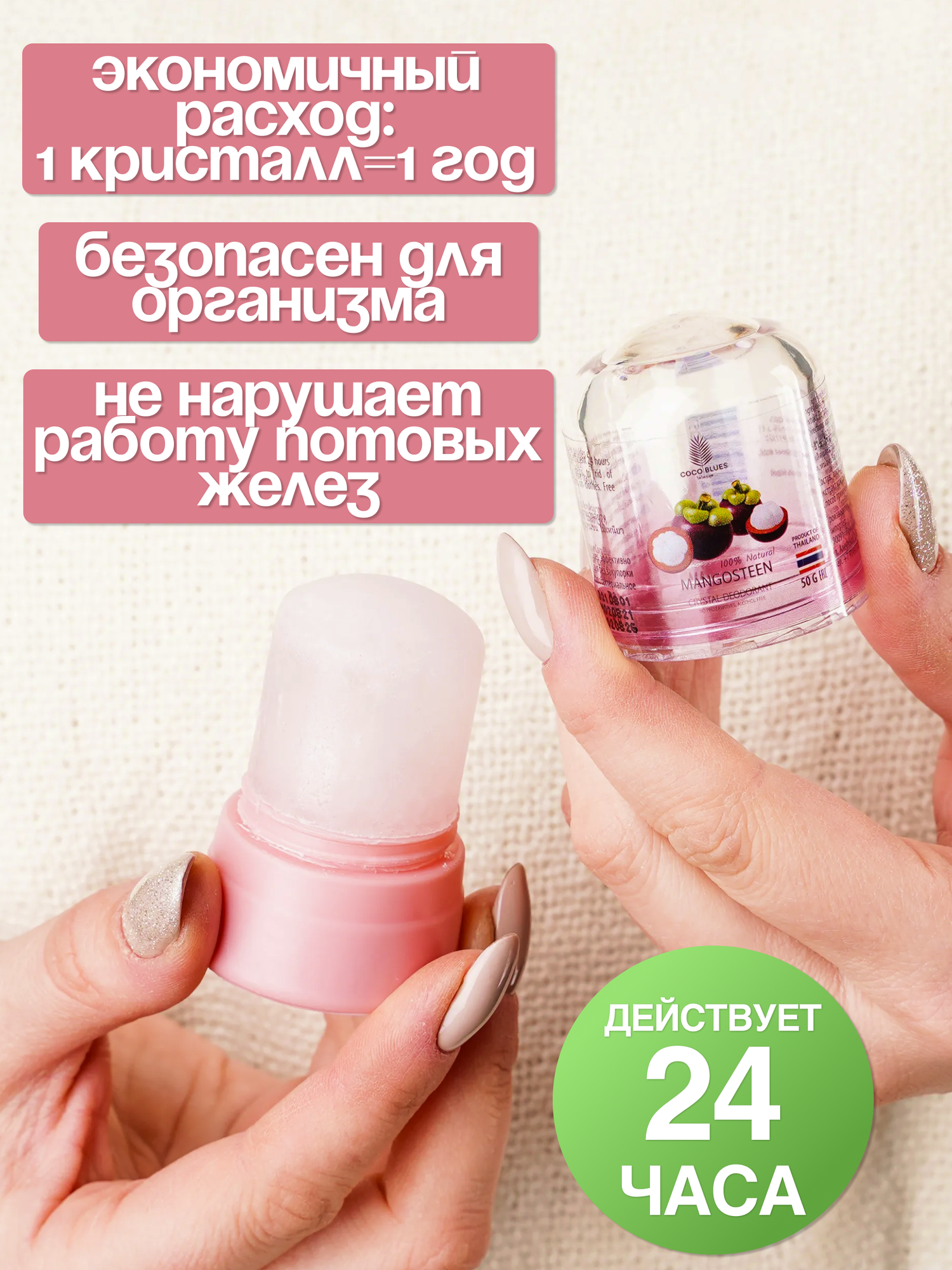 Тайский натуральный дезодорант-кристалл Coco Blues с ароматом мангостина для мужчин и женщин 50г. интересное: