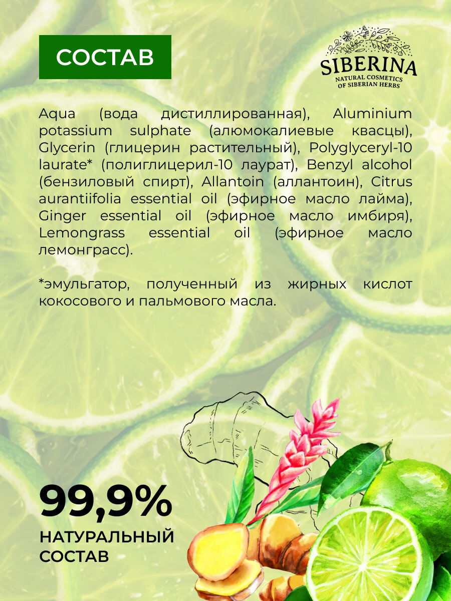 Siberina Натуральный дезодорант "Имбирь и лайм" 50 мл интересное: