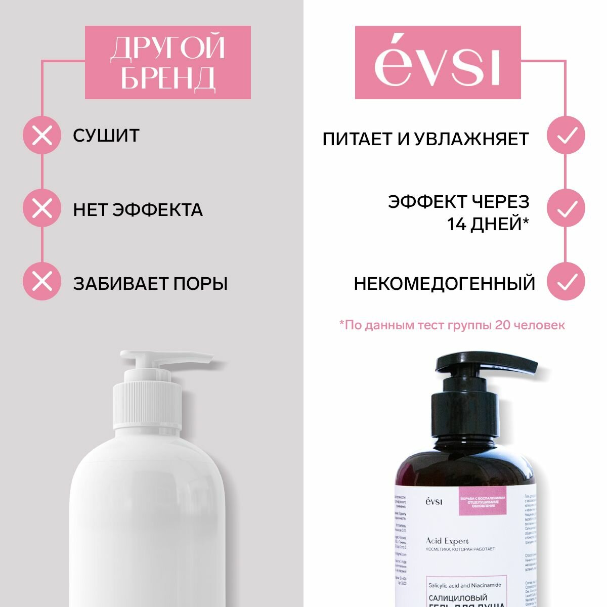 Купить EVSI Гель для душа с кислотами от прыщей, черных точек, акне, Салициловая кислота, 300 мл