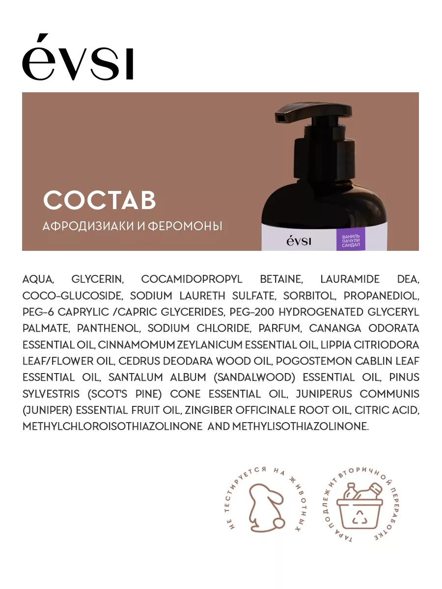 Гель для душа Evsi, мужской, без спирта, гипоаллергенный, органический, 300мл