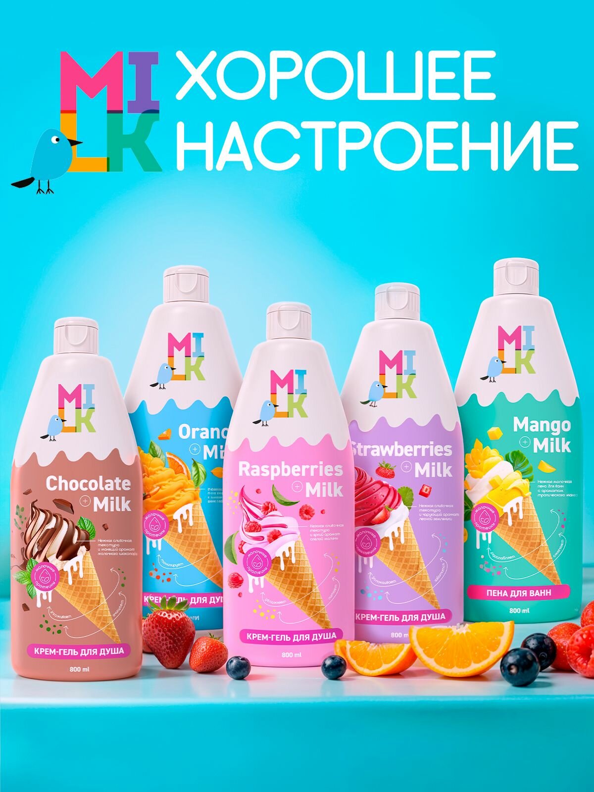 Крем-гель для душа Milk Ice Cream "Молоко и Шоколад", для всех типов кожи, 800 мл интересное: