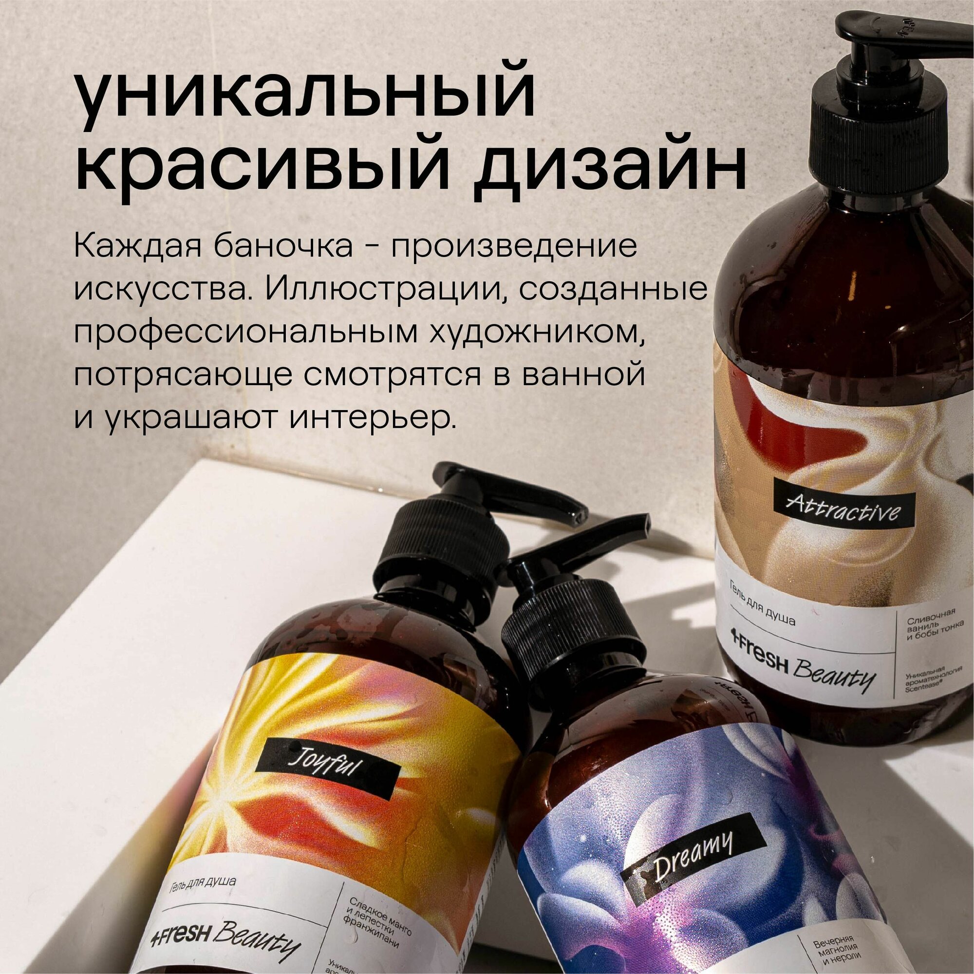 Гель для душа парфюмированный 4FRESH beauty Attractive сливочная ваниль и бобы тонка, натуральный, увлажняющий, 450 мл