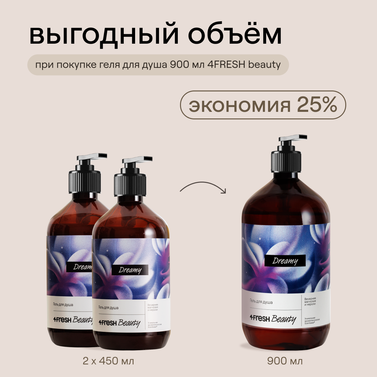 СохранитьГель для душа парфюмированный 4FRESH beauty Dreamy вечерняя магнолия и нероли, натуральный, увлажняющий, 900 мл интересное: