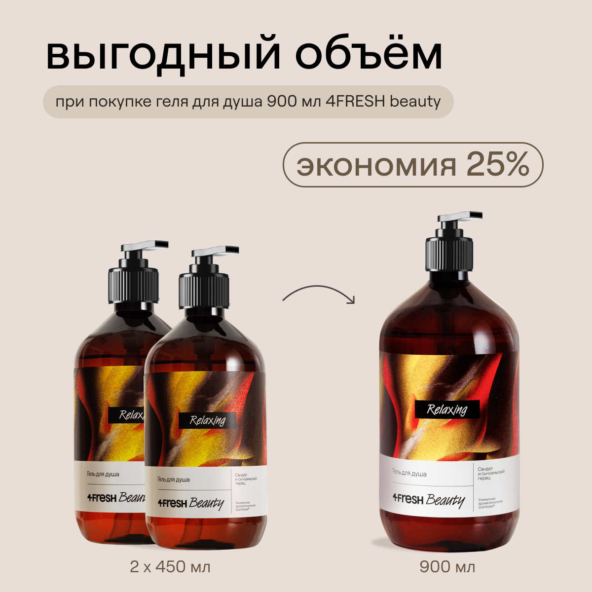 Гель для душа парфюмированный 4FRESH beauty Relaxing сандал и сычуаньский перец, натуральный, увлажняющий, 450 мл