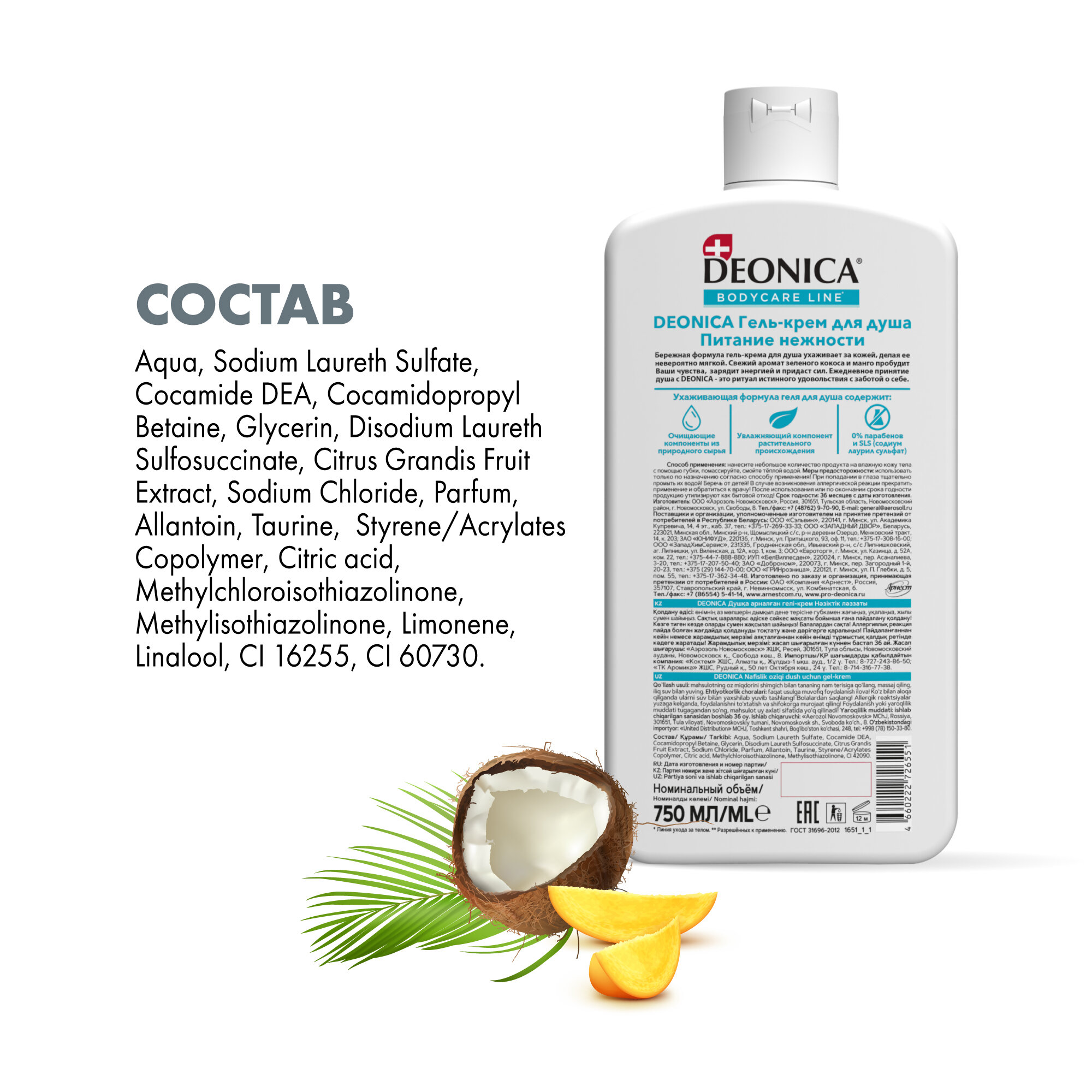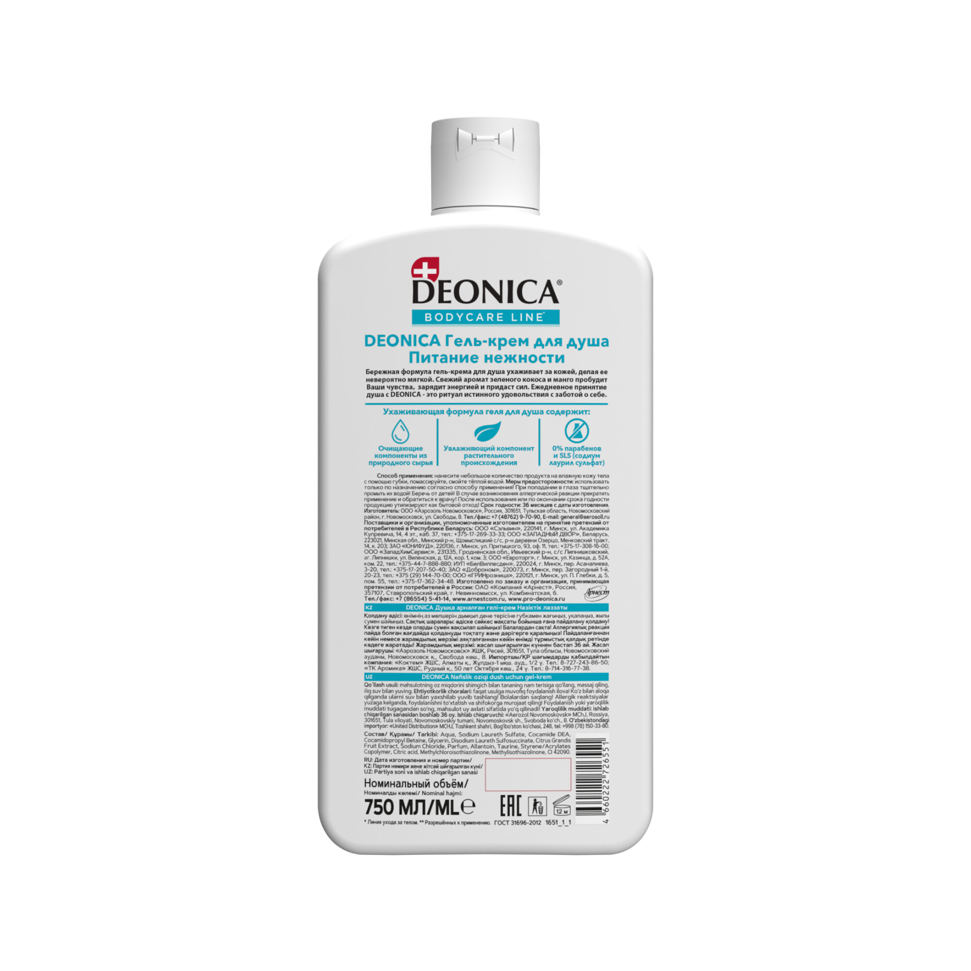 Купить Гель крем для душа женский парфюмированный Deonica Питание нежности 750 мл