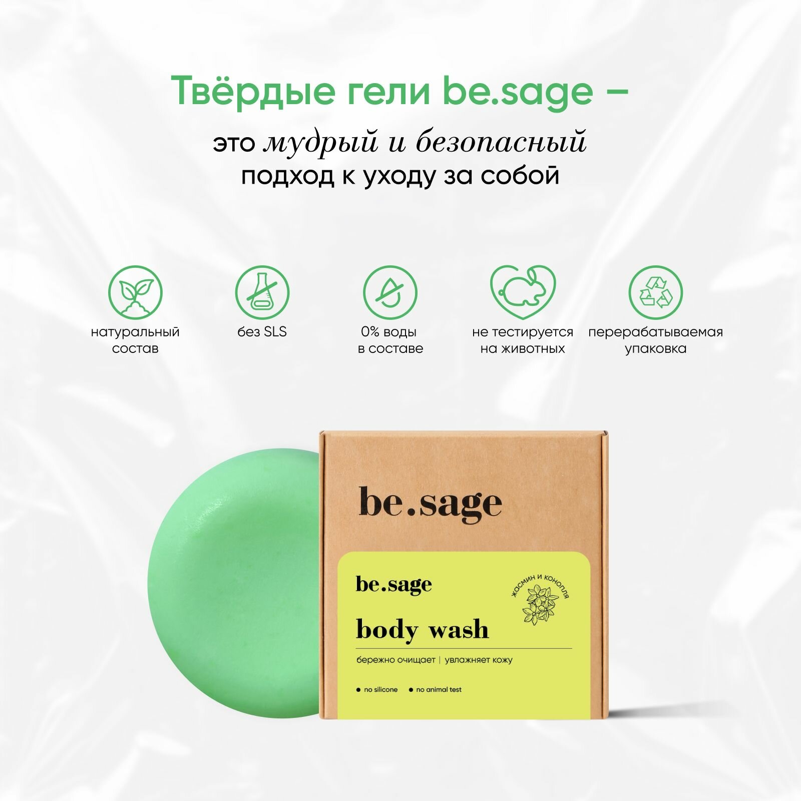 СохранитьГель для душа увлажняющий твердый, Жасмин и конопля, с маслом ши, 50 г интересное: