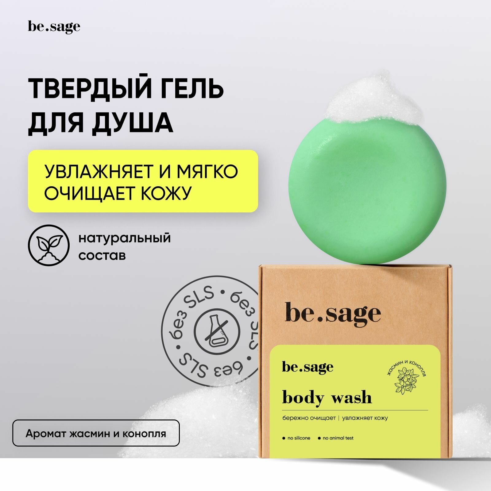 Be.sage body wash Гель для душа женский / мужской парфюмированный увлажняющий твердый с маслом ши / мыло для тела с ароматом Нероли и Жожоба, 50 г