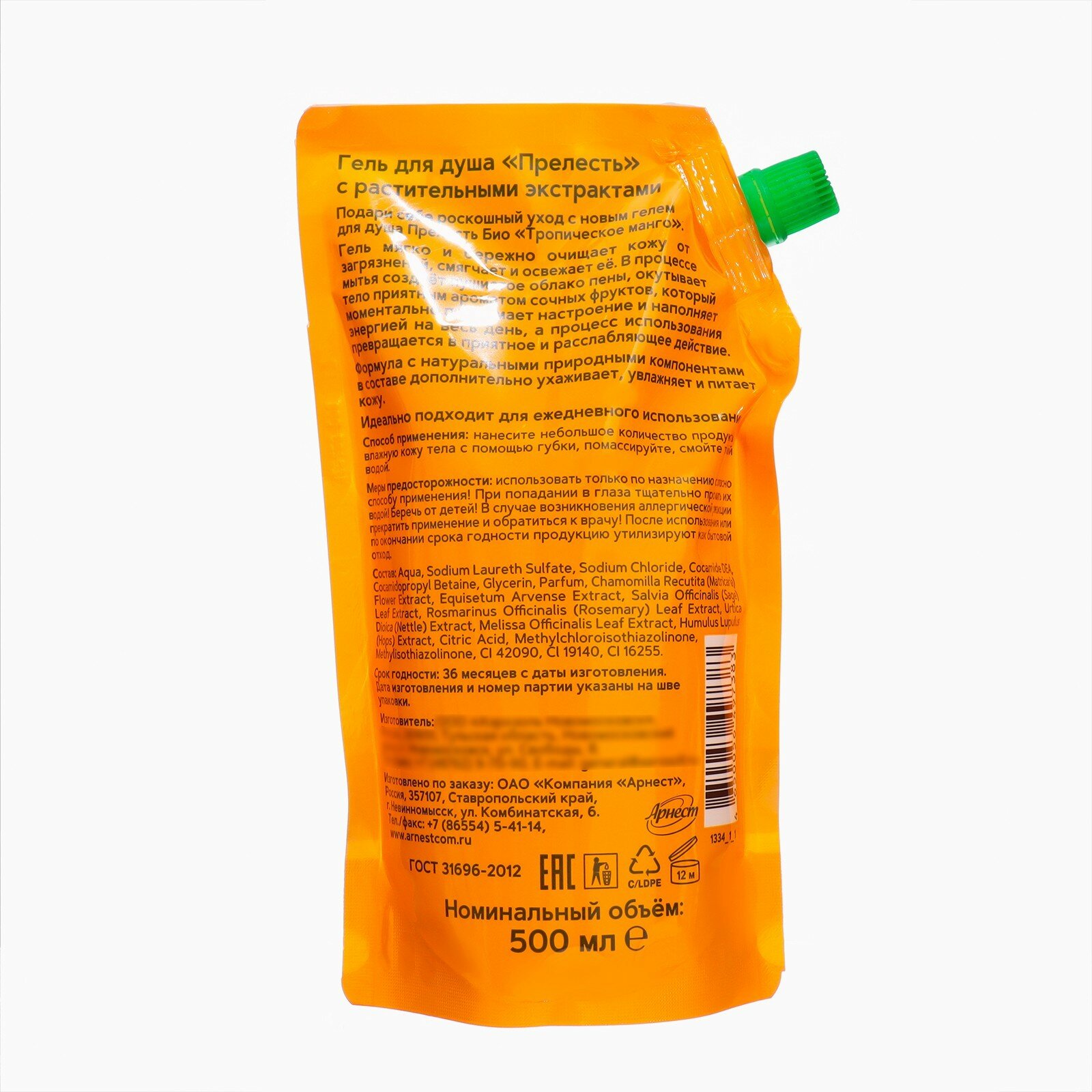 Гель для душа "Прелесть Био" "Тропическое манго" 500 мл, дойпак интересное:
