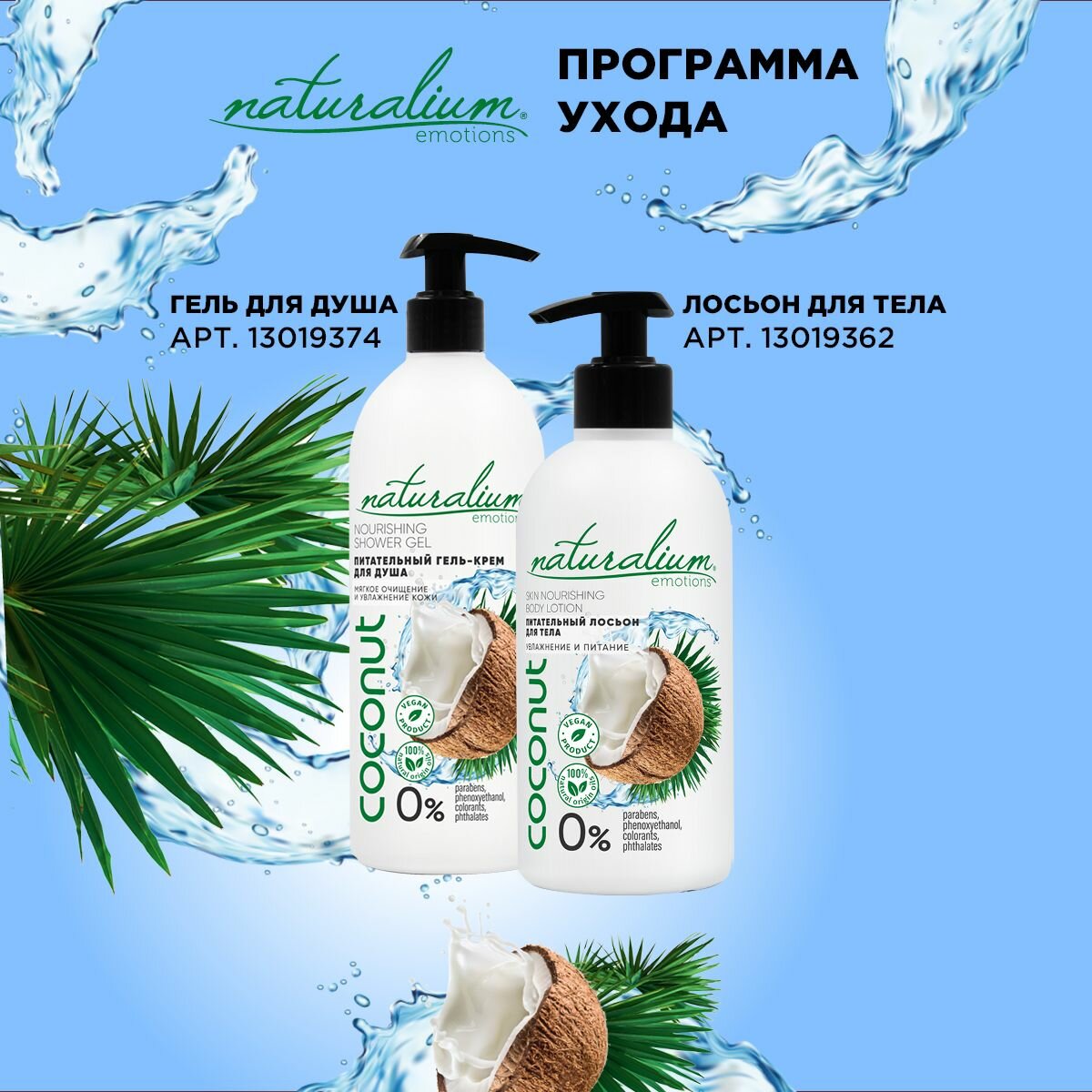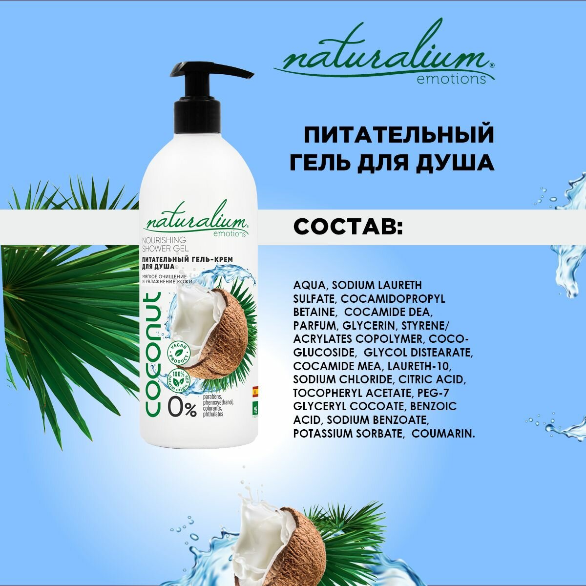 Купить Naturalium Emotions Питательный Гель-крем для душа, гель для душа "Кокос"/веган, 500 мл