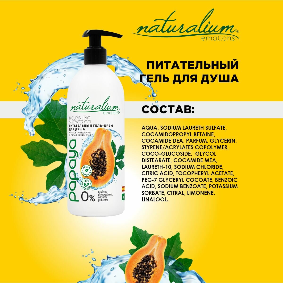 Купить Naturalium Emotions Питательный Гель-крем для душа, гель для душа "Папайя" /веган, 500 мл. Натуральный уход за кожей тела для упругости и увлажнения, расслабляющее действие.