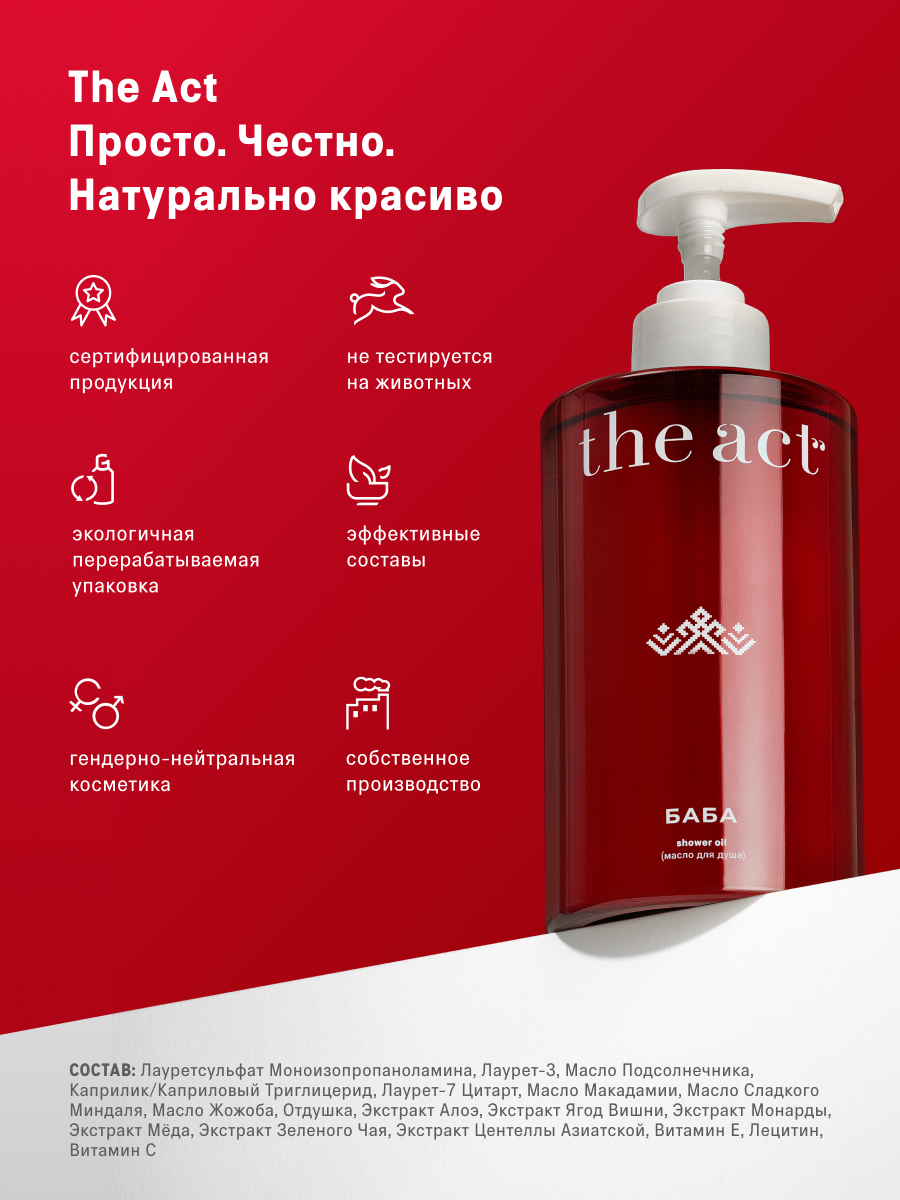 Гель масло для душа The Act, гидрофильное, серия БАБА, 460 мл интересное: