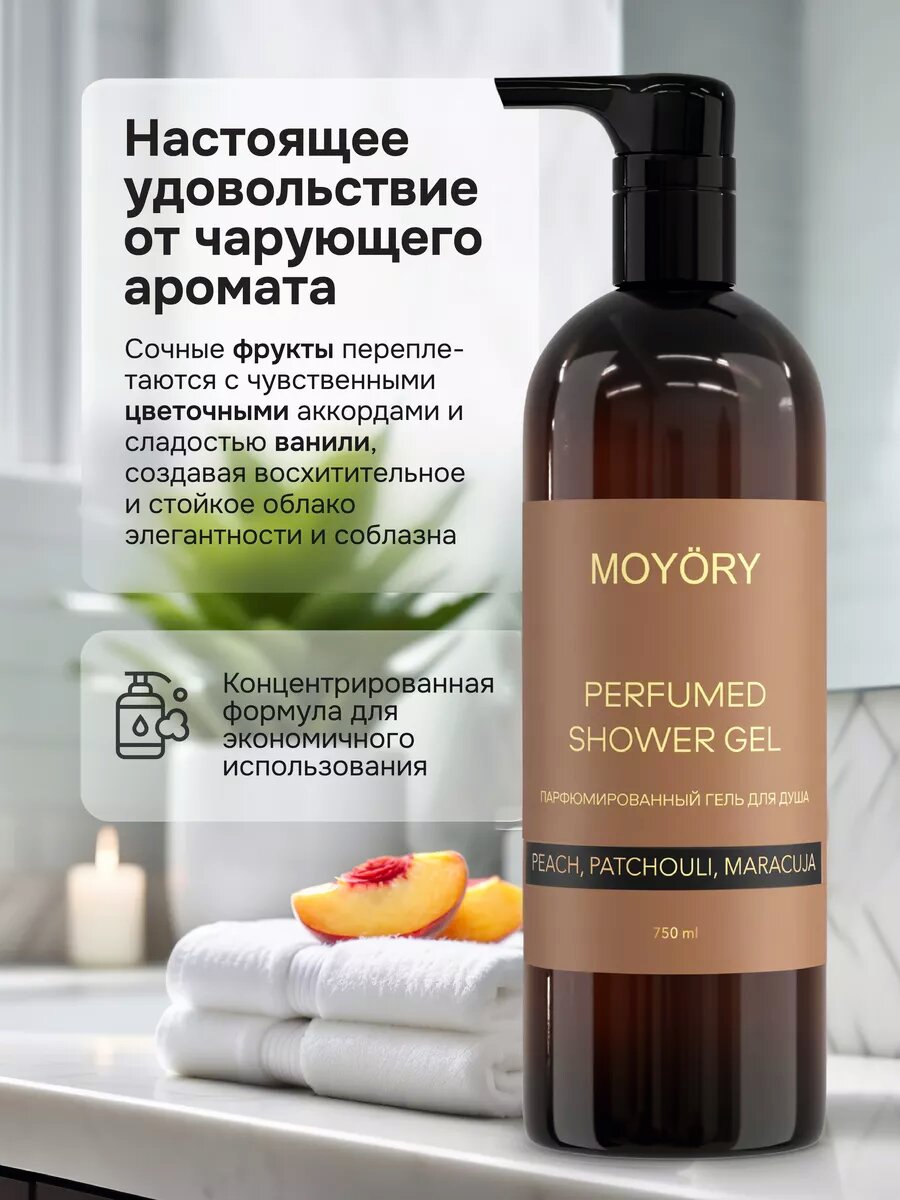 Парфюмированный гель для душа "MOYORY" с ароматом персика, пачули и маракуя, 750мл. интересное:
