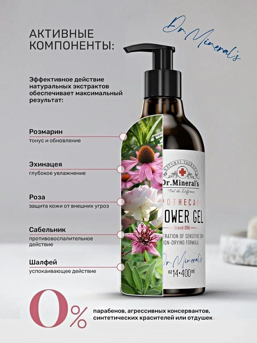 Dr. Mineral's, Натуральный гель для душа, бережное очищение и увлажнение кожи, с экстрактами целебных растений, 400 мл