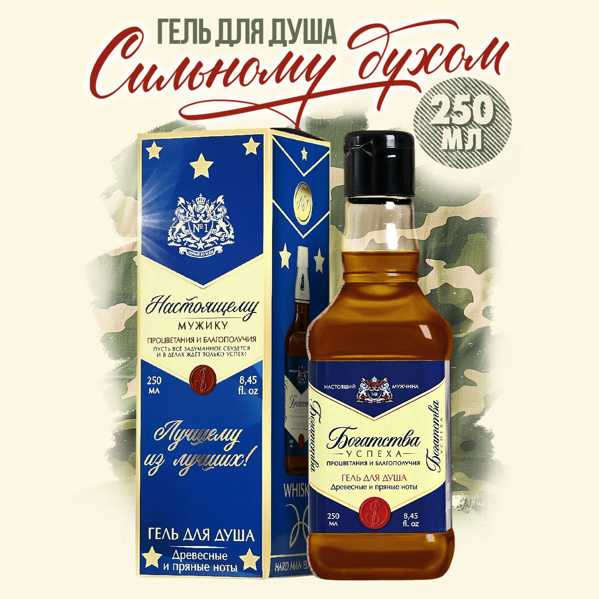 Гель для душа подарочный мужской «На удачу», аромат пряный виски, 250 мл, на подарок