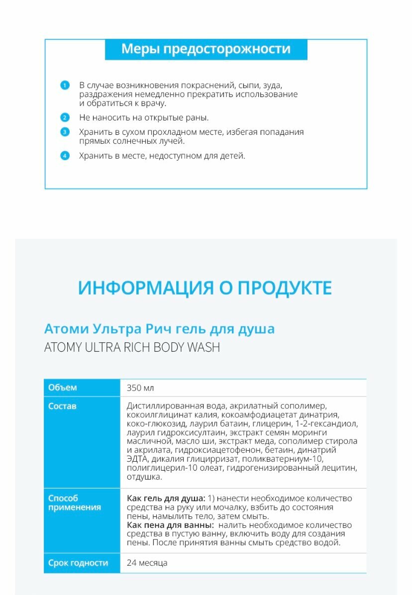 Гель для душа Ultra Rich от Атоми/Atomy, 350 мл, Южная Корея интересное: