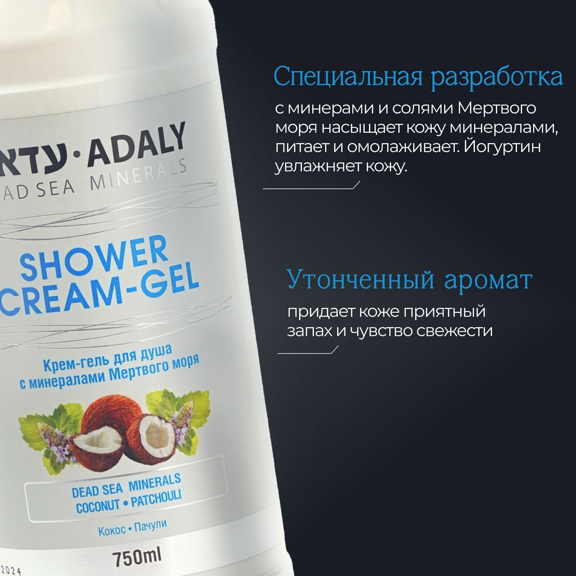 Купить Крем - гель для душа Adaly Минералы Мертвого моря с экстрактом кокоса и маслом пачули 750мл