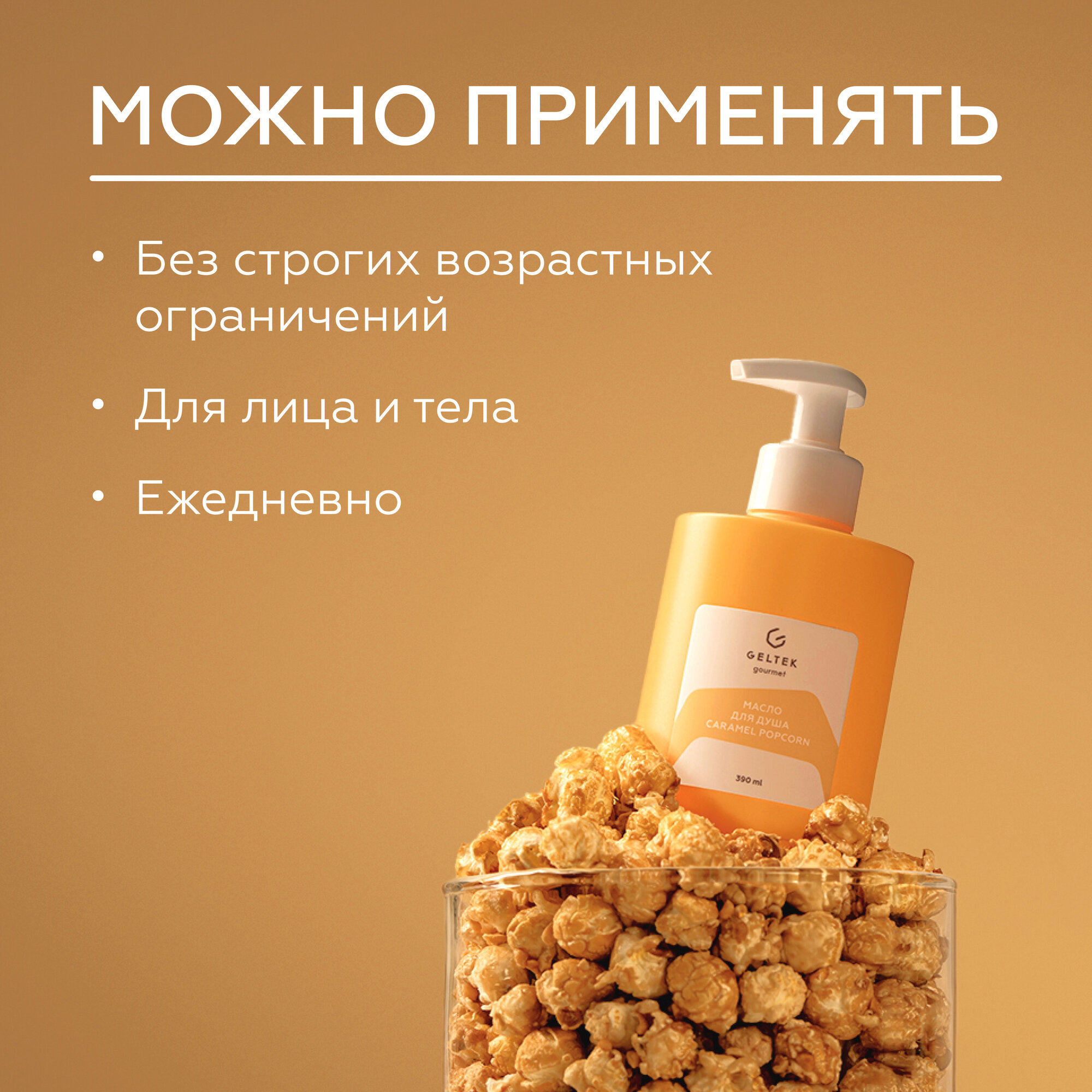 Гельтек Масло для душа увлажняющее Caramel popcorn Geltek Gourmet, 390 мл интересное: