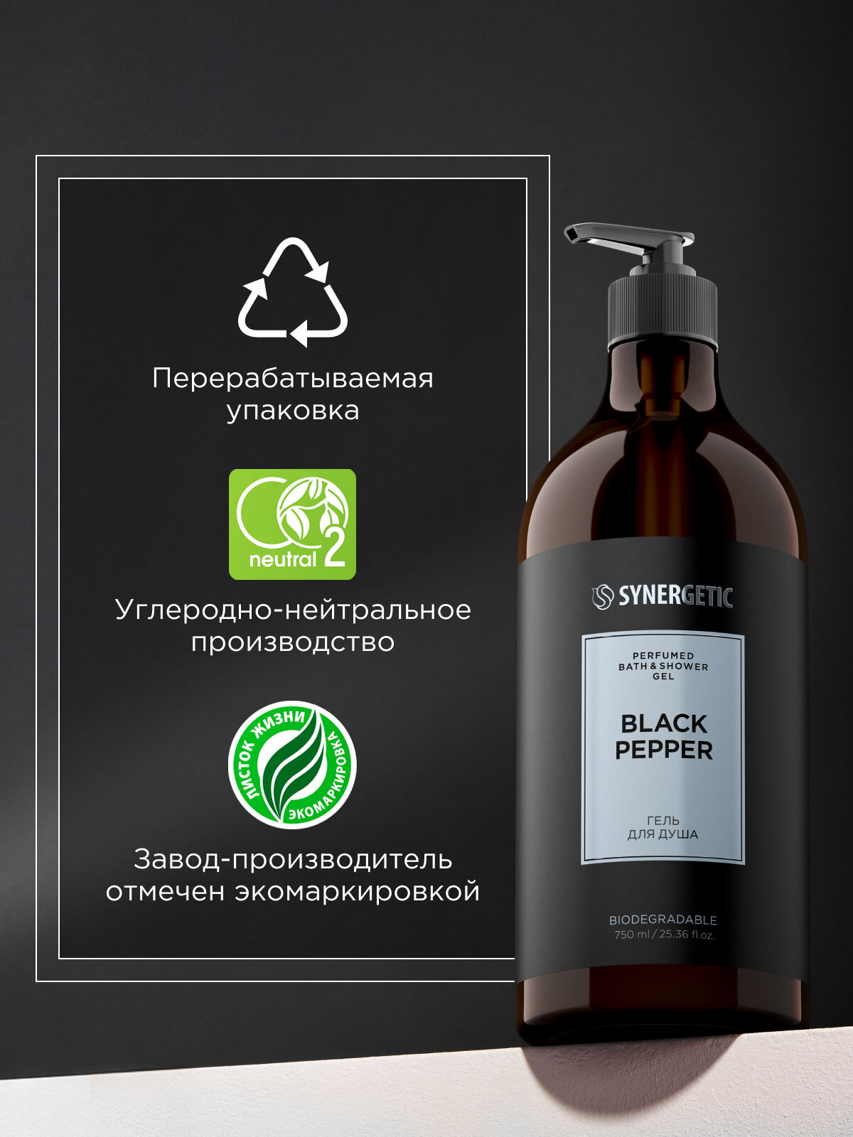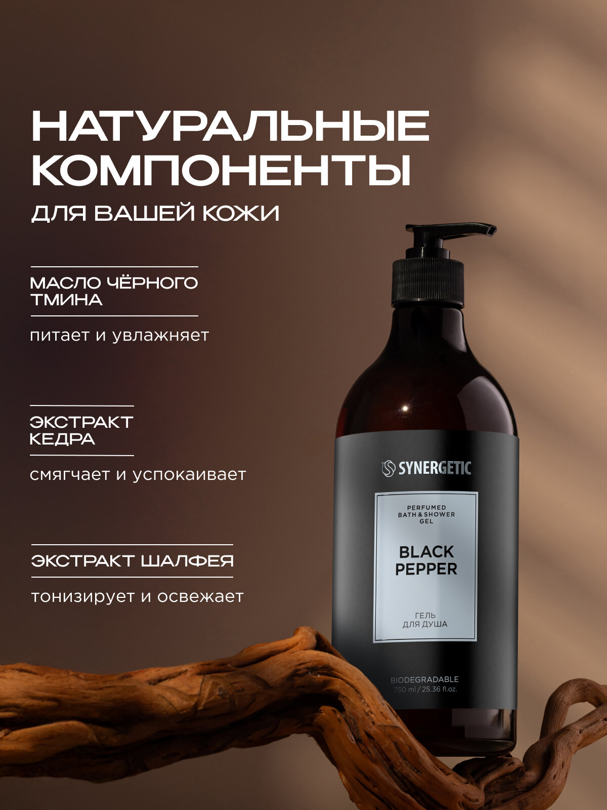 Гель для душа SYNERGETIC Black Pepper, парфюмированный, 750мл интересное: