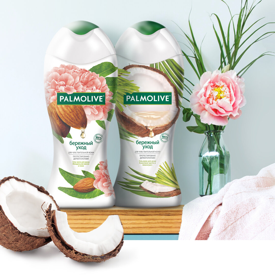 Гель-крем для душа Palmolive Бережный Уход с кокосовым маслом и лемонграссом для чувствительной кожи, 250 мл (2 шт ) интересное: