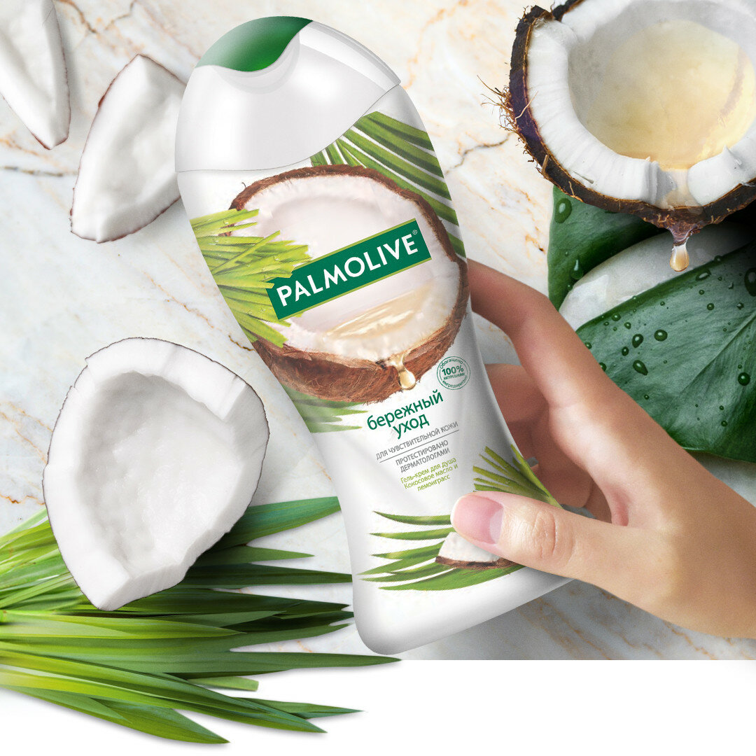 Гель-крем для душа Palmolive Бережный Уход с кокосовым маслом и лемонграссом для чувствительной кожи, 250 мл (2 шт )