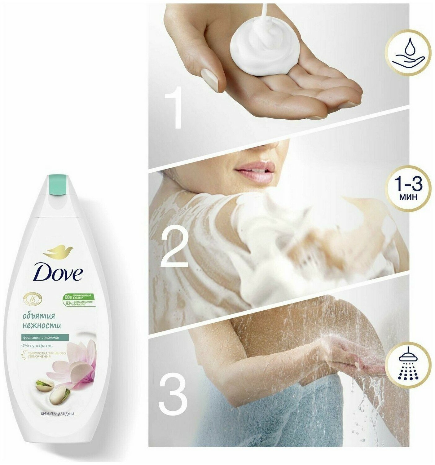 Ниже Вы можете прочитать отзывы на Dove Крем-гель для душа Фисташковый крем и магнолия бессульфатный 250 мл - 6 шт, ознакомится с подробными характеристиками, посмотреть интересные обзоры и фотографии на Dove Крем-гель для душа Фисташковый крем и магнолия бессульфатный 250 мл - 6 шт.