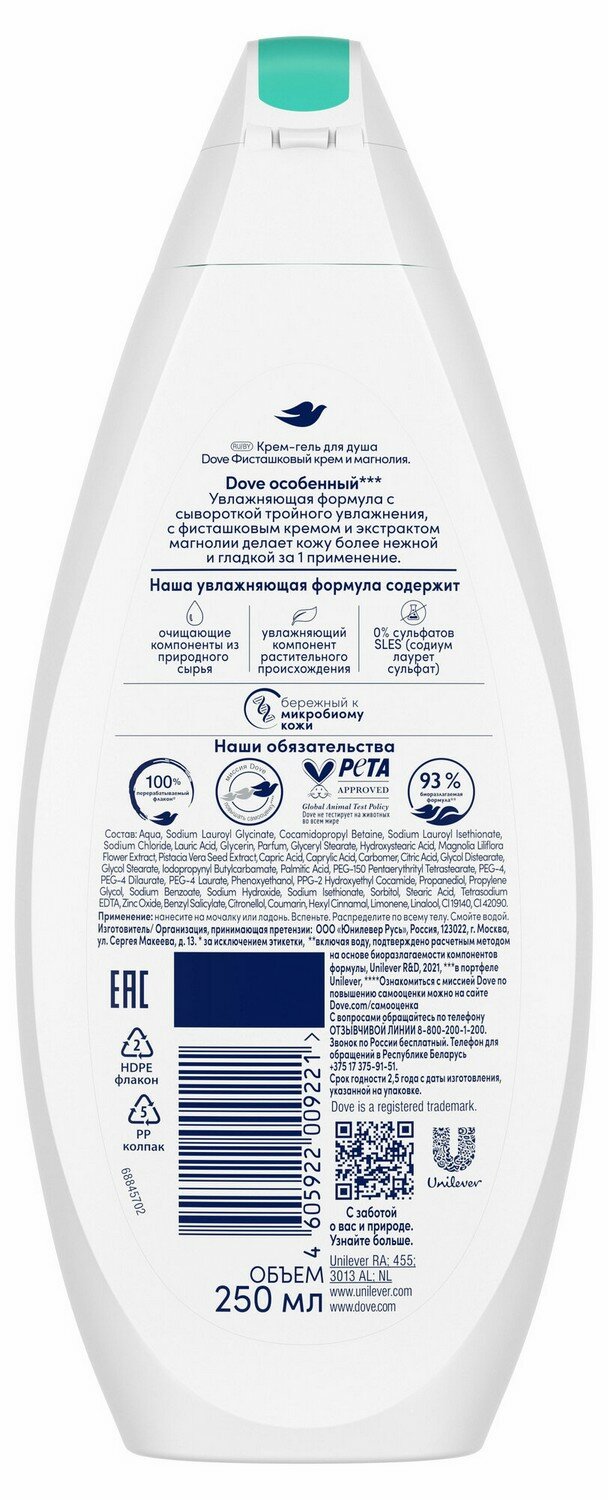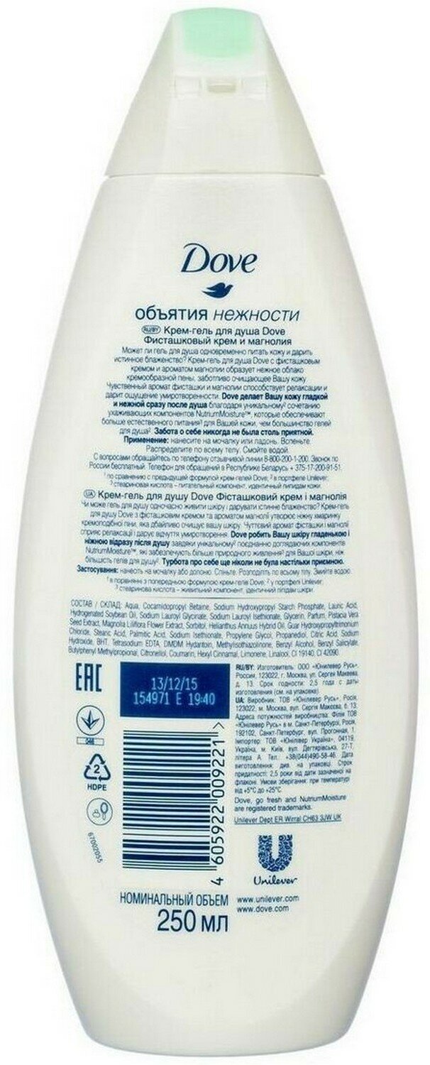 Dove Крем-гель для душа Фисташковый крем и магнолия бессульфатный 250 мл - 6 шт интересное: