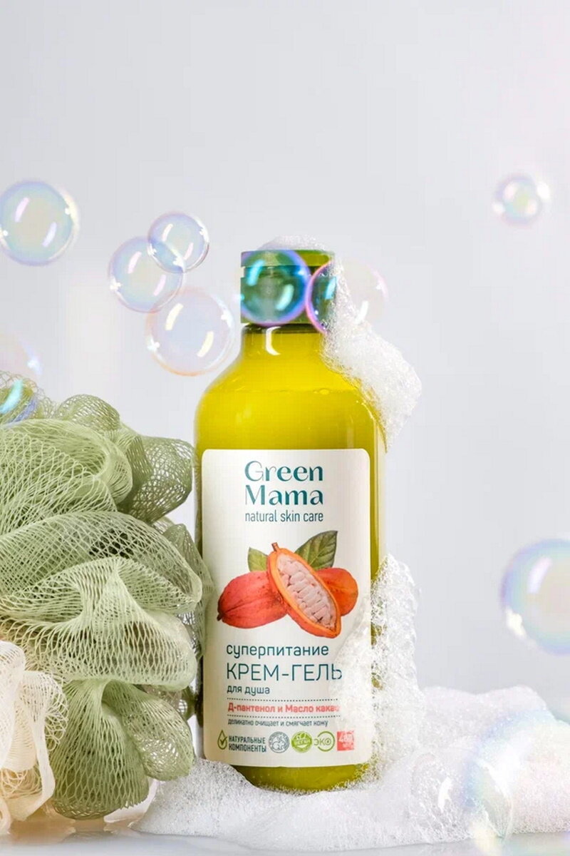 Крем-гель для душа GREEN MAMA суперпитание с Д-пантенолом и маслом какао 400 мл интересное: