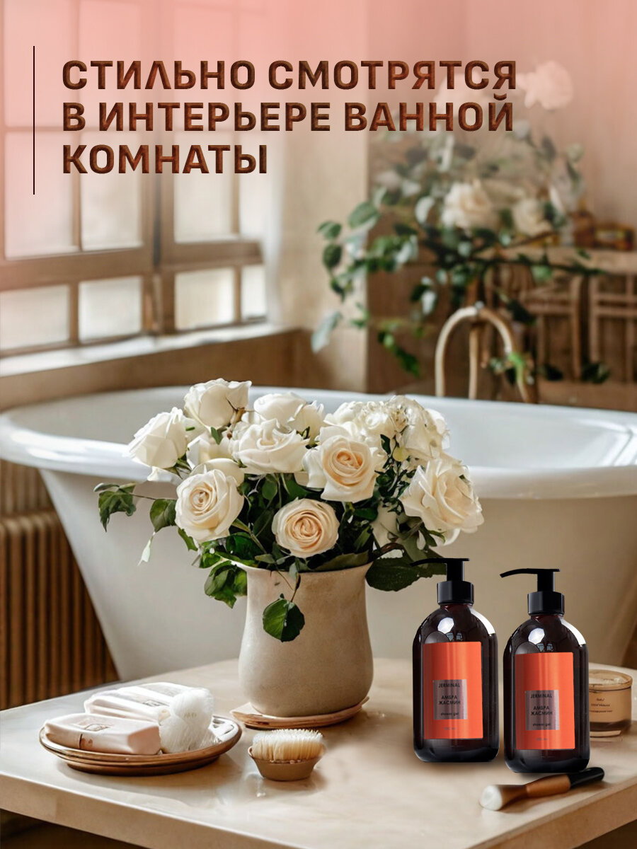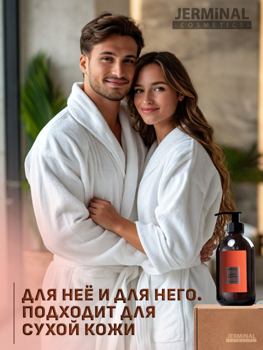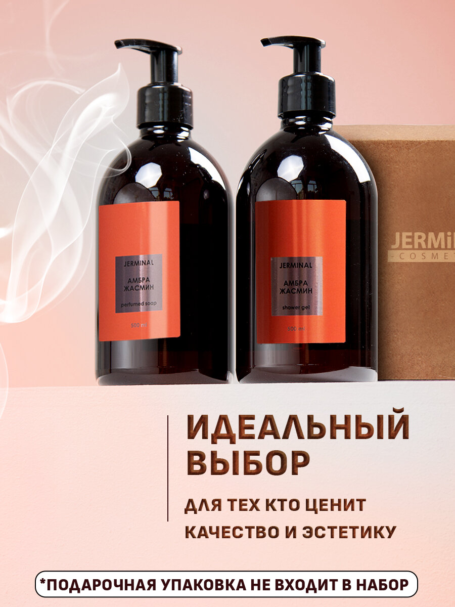 Парфюмированный гель для душа, жидкое мыло для рук и тела JERMiNAL -COSMETICS- набор подарочный Амбра Жасмин, 2х500 мл интересное: