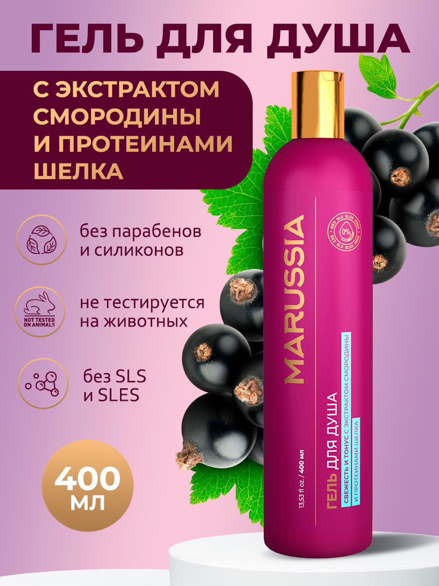 Marussia Гель для душа женский мужской парфюмированный, «Свежесть и тонус» с экстрактом смородины и протеинов шелка, 400 мл интересное: