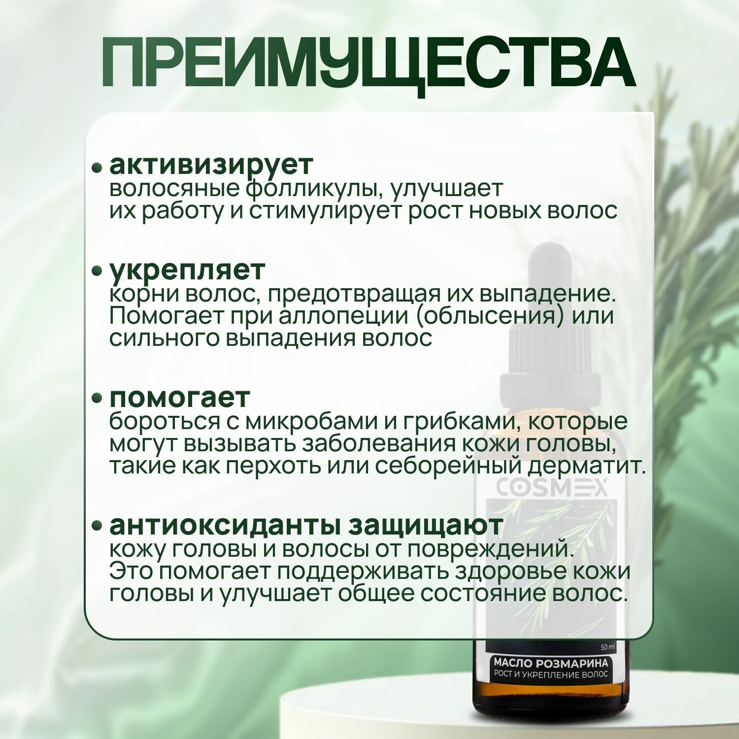 Эфирное масло розмарина для роста волос / для массажа с пипеткой 50 мл Cosmex интересное: