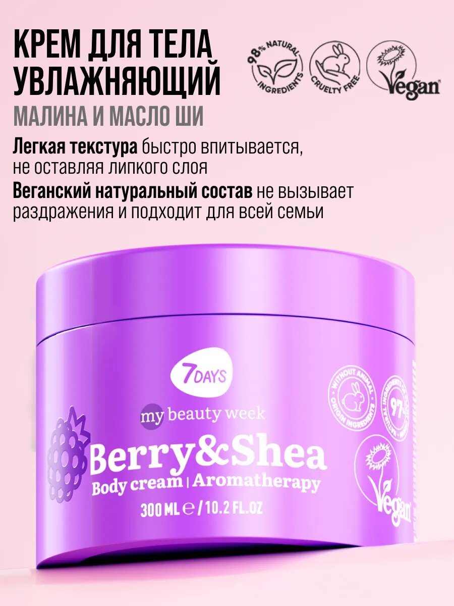 Купить 7DAYS Крем для тела увлажняющий с экстрактом Малины и маслом Ши BERRY&SHEA MY BEAUTY WEEK