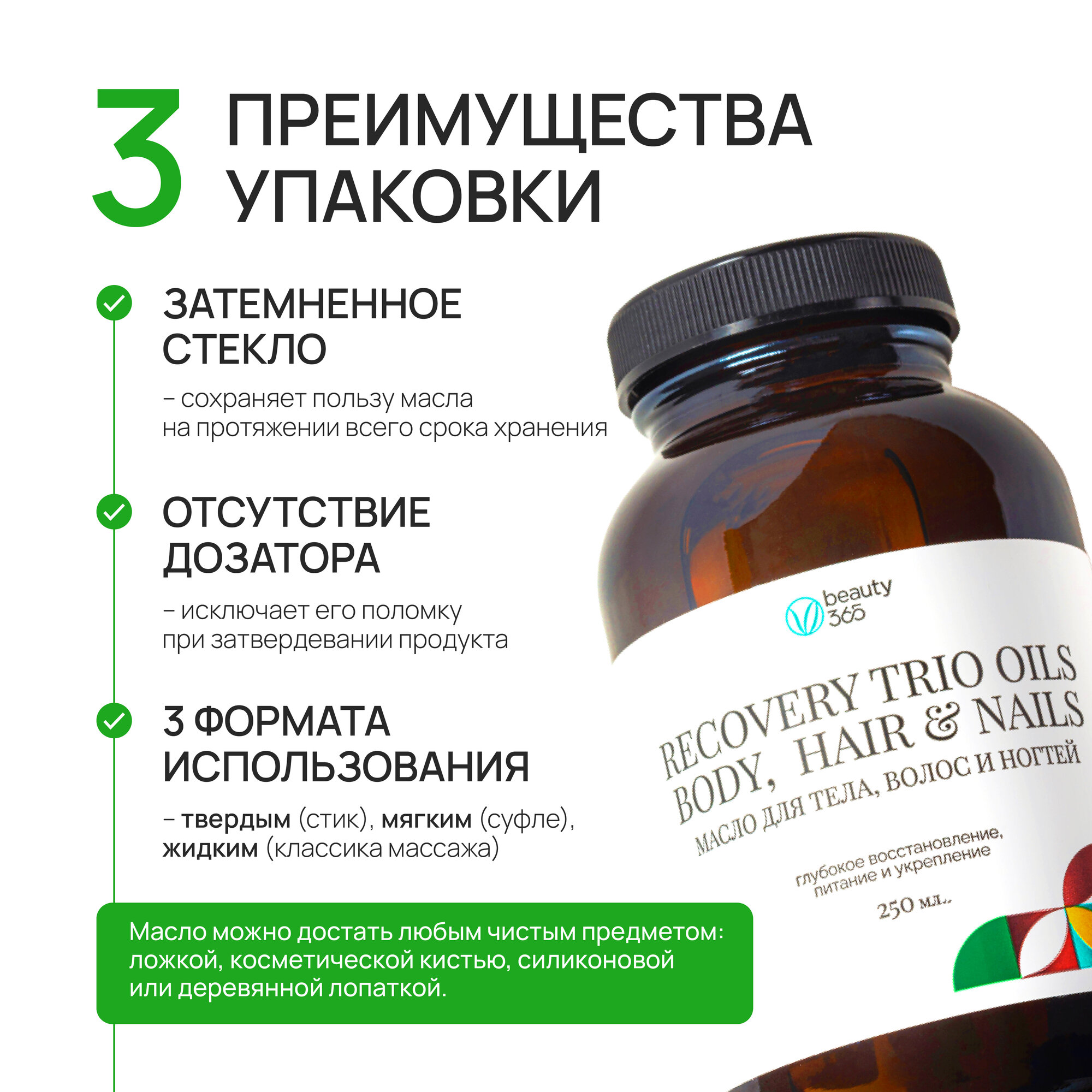 Beauty 365 Натуральное масло для тела, волос и ногтей Recovery trio oils 250 мл интересное: