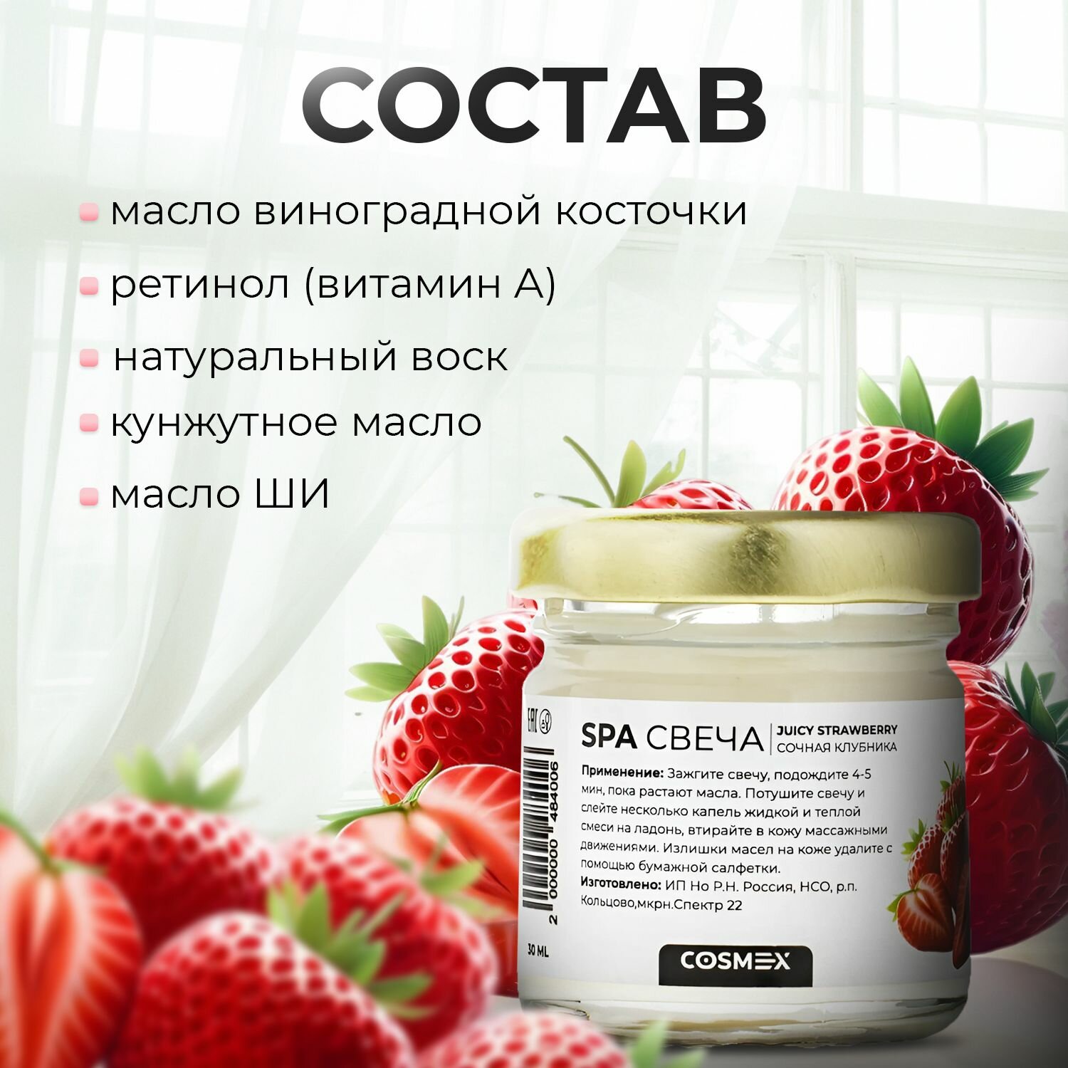 Умная массажная аромасвеча / смарт-свеча для SPA массажа Juicy Strawberry Сочная Клубника 30 мл Cosmex интересное: