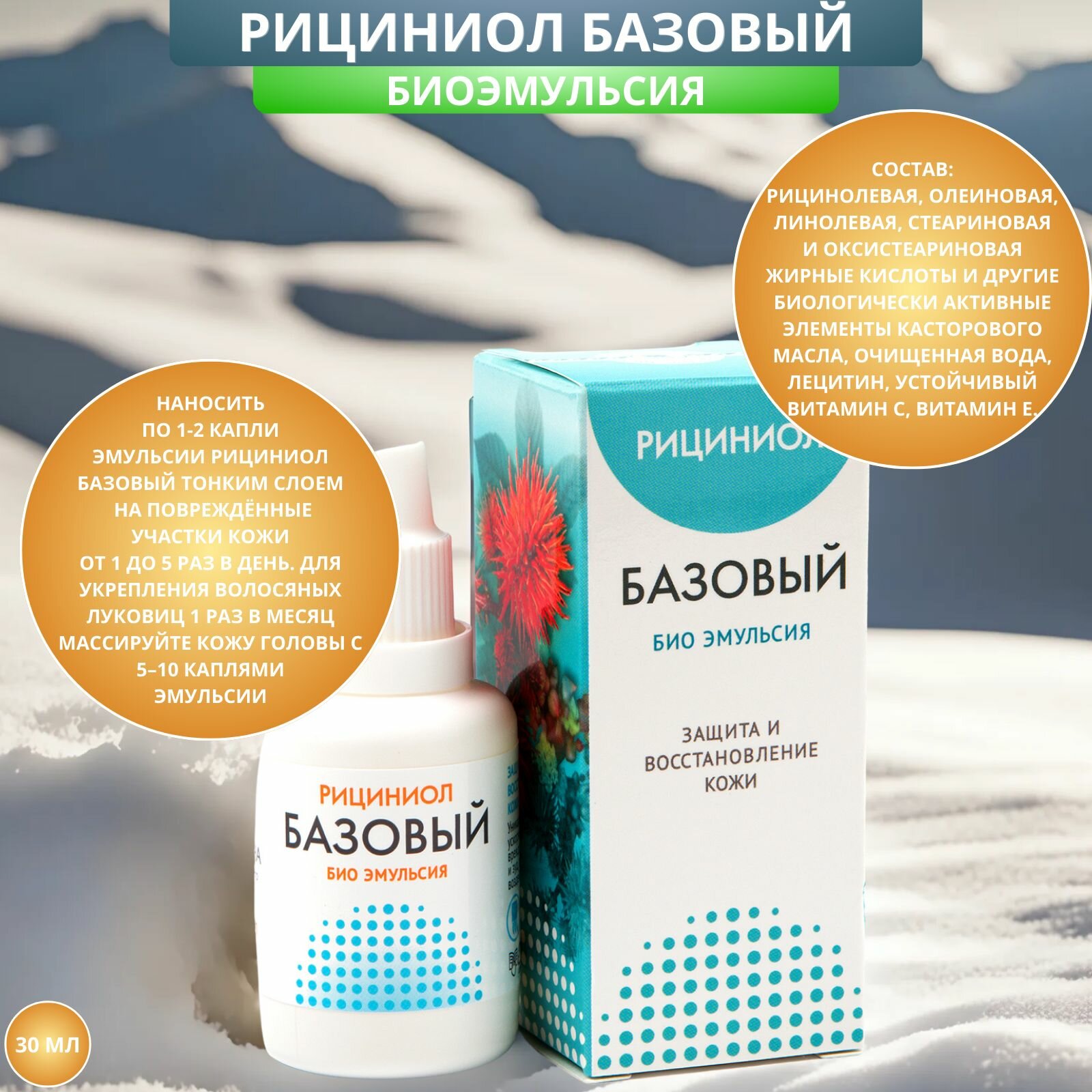 Эмульсия Рициниол Базовый восстанавливает и очищает кожу, 15 мл