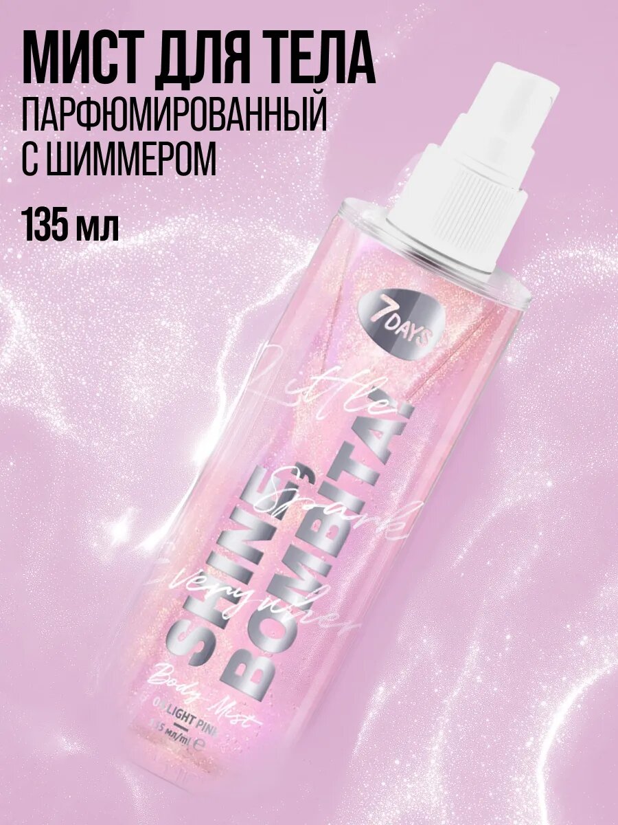 Купить 7DAYS Мист для тела, лица и волос парфюмированный спрей для тела SHINE, BOMBITA 04 Light Pink