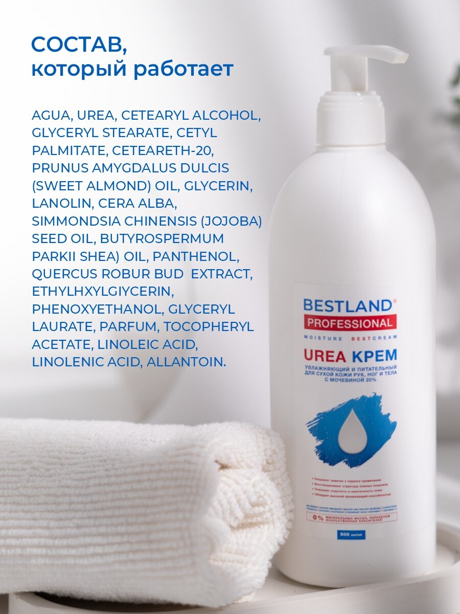 Крем Bestland, увлажняющий и питательный уход за кожей рук, ног и тела, с мочевиной 20%, 500мл интересное: