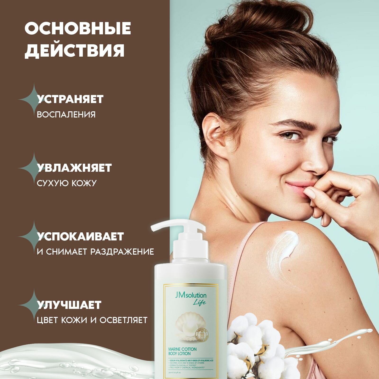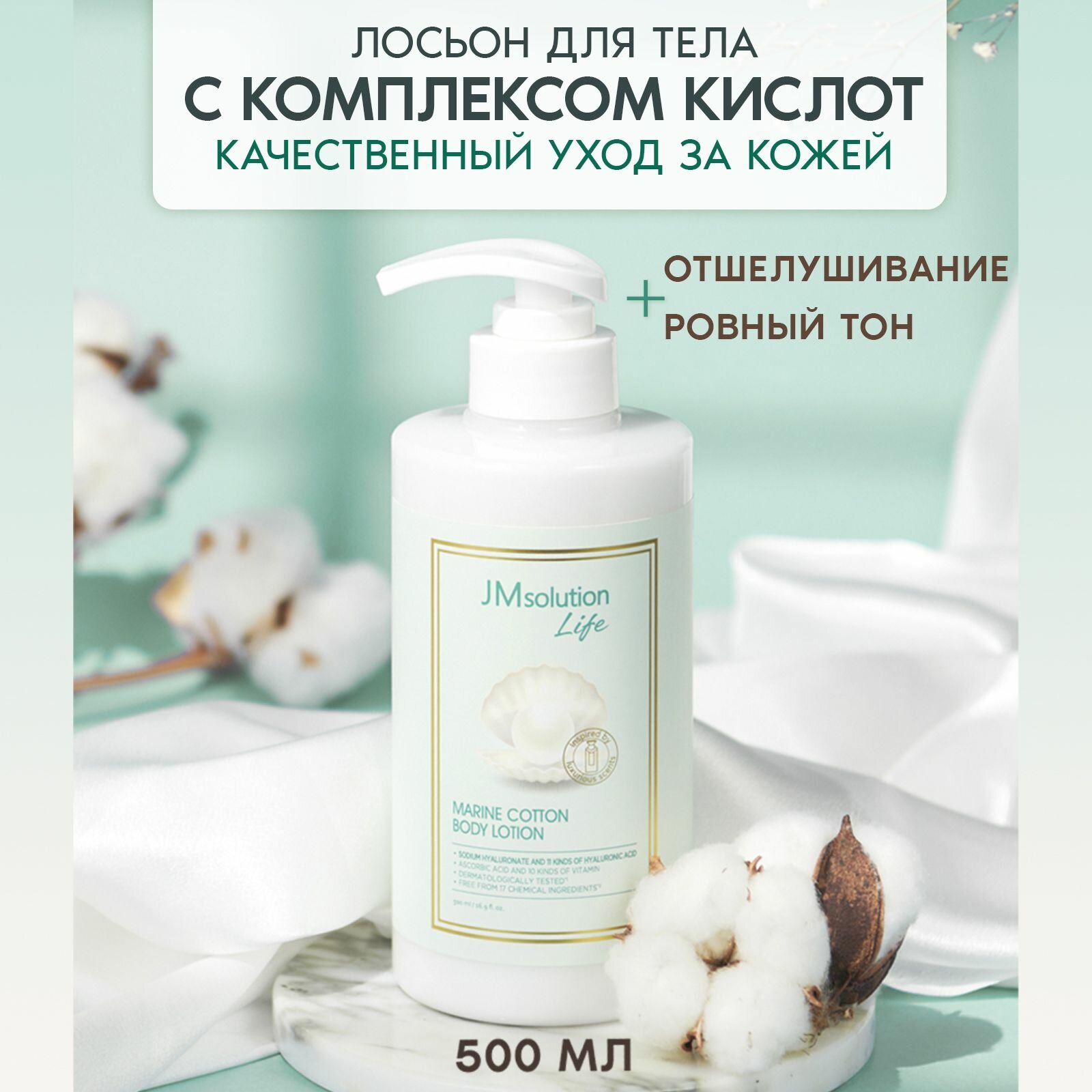 JMsolution Крем лосьон для тела с кислотами LIFE MARINE COTTON BODY LOTION, 500 мл интересное: