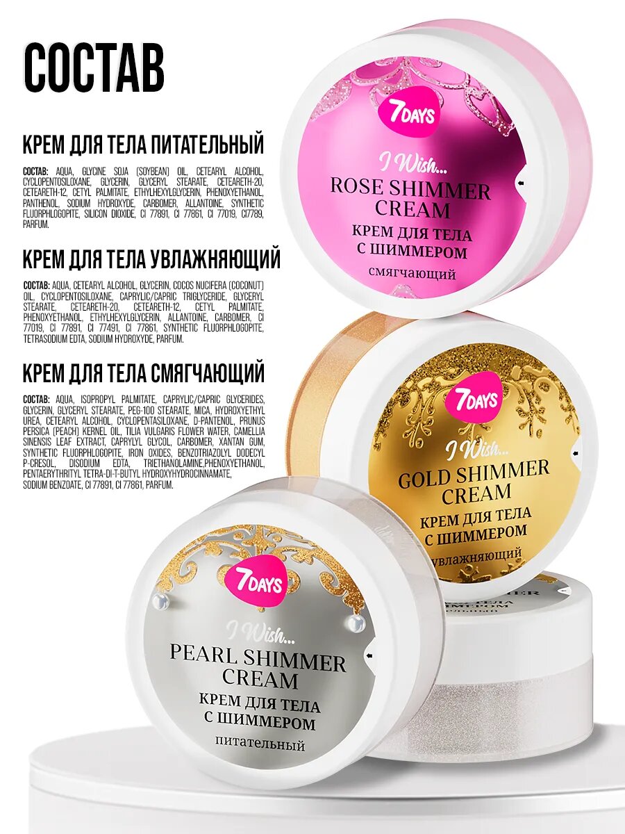7DAYS Крем для тела, набор 3 шт. увлажняющий, питательный, смягчающий I WISH интересное: