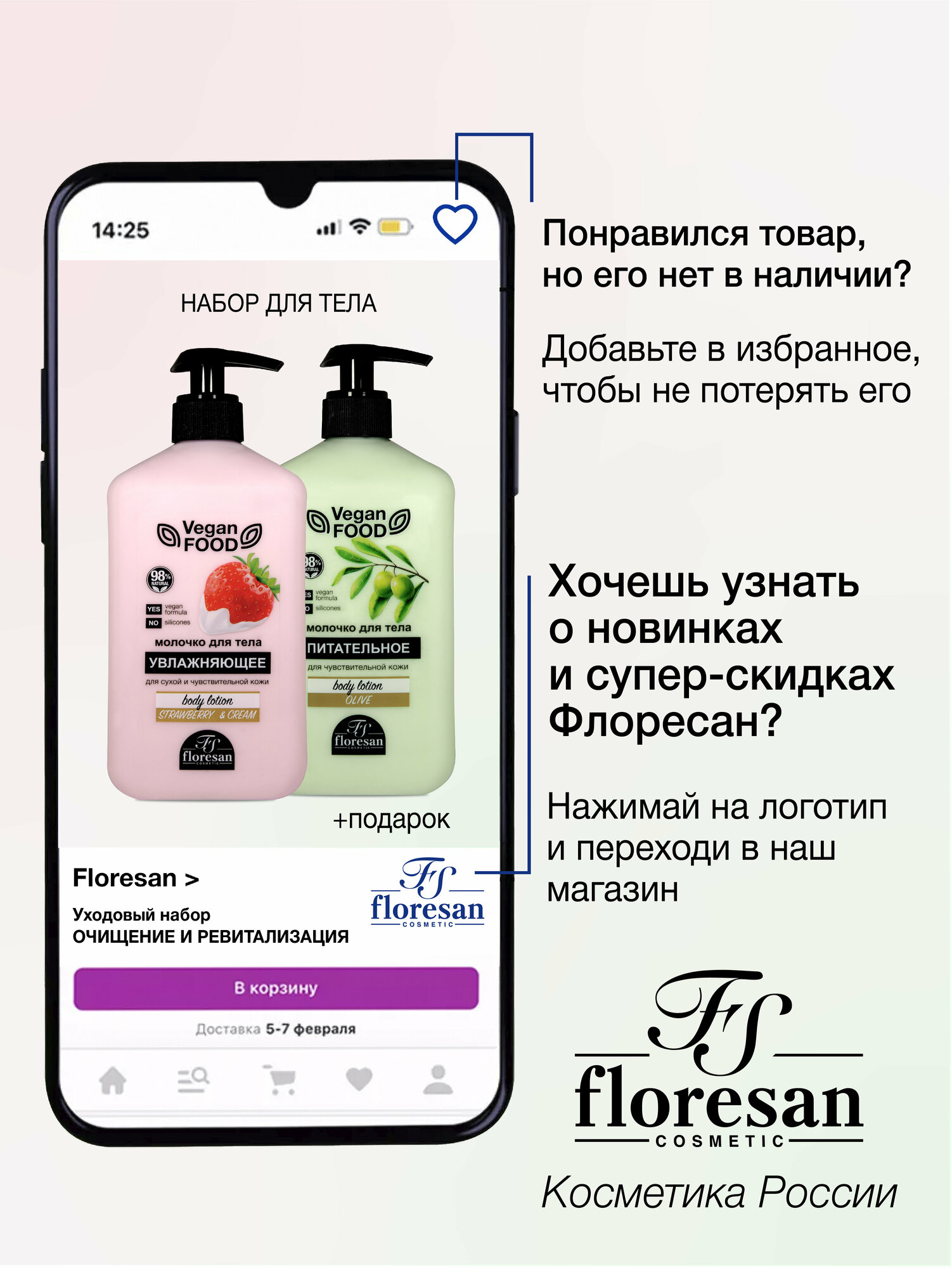 Купить Молочко для тела Floresan Vegan Food, Оливковое и Клубника, 2х500 мл