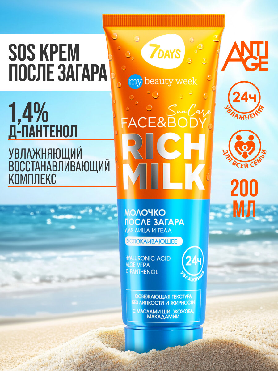 Купить 7DAYS Крем для тела увлажняющий с пантенолом RICH MILK 200ML SUN CARE