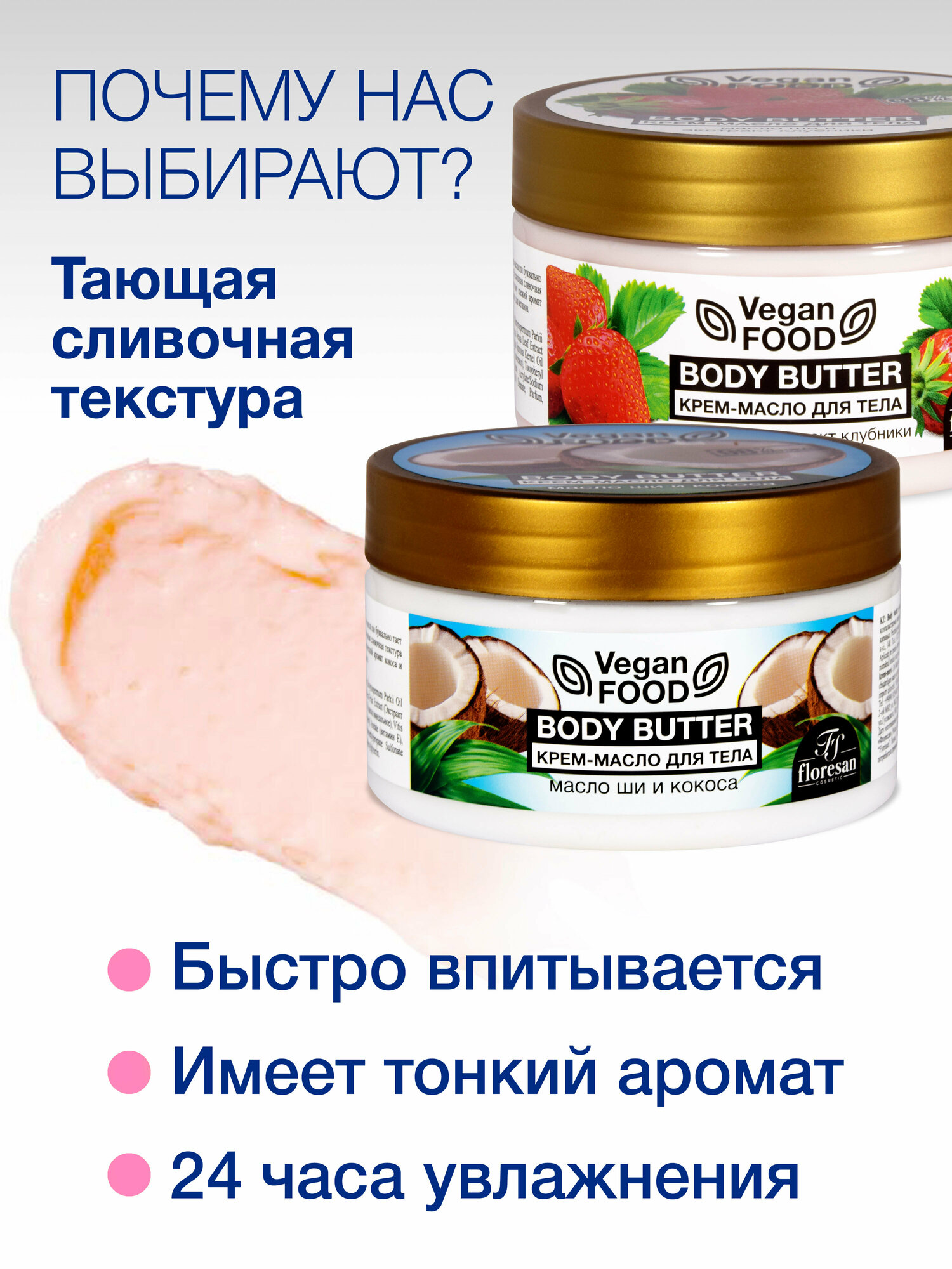 Крем-масло для тела Floresan Vegan FOOD Манго и Банан, 2х250 мл
