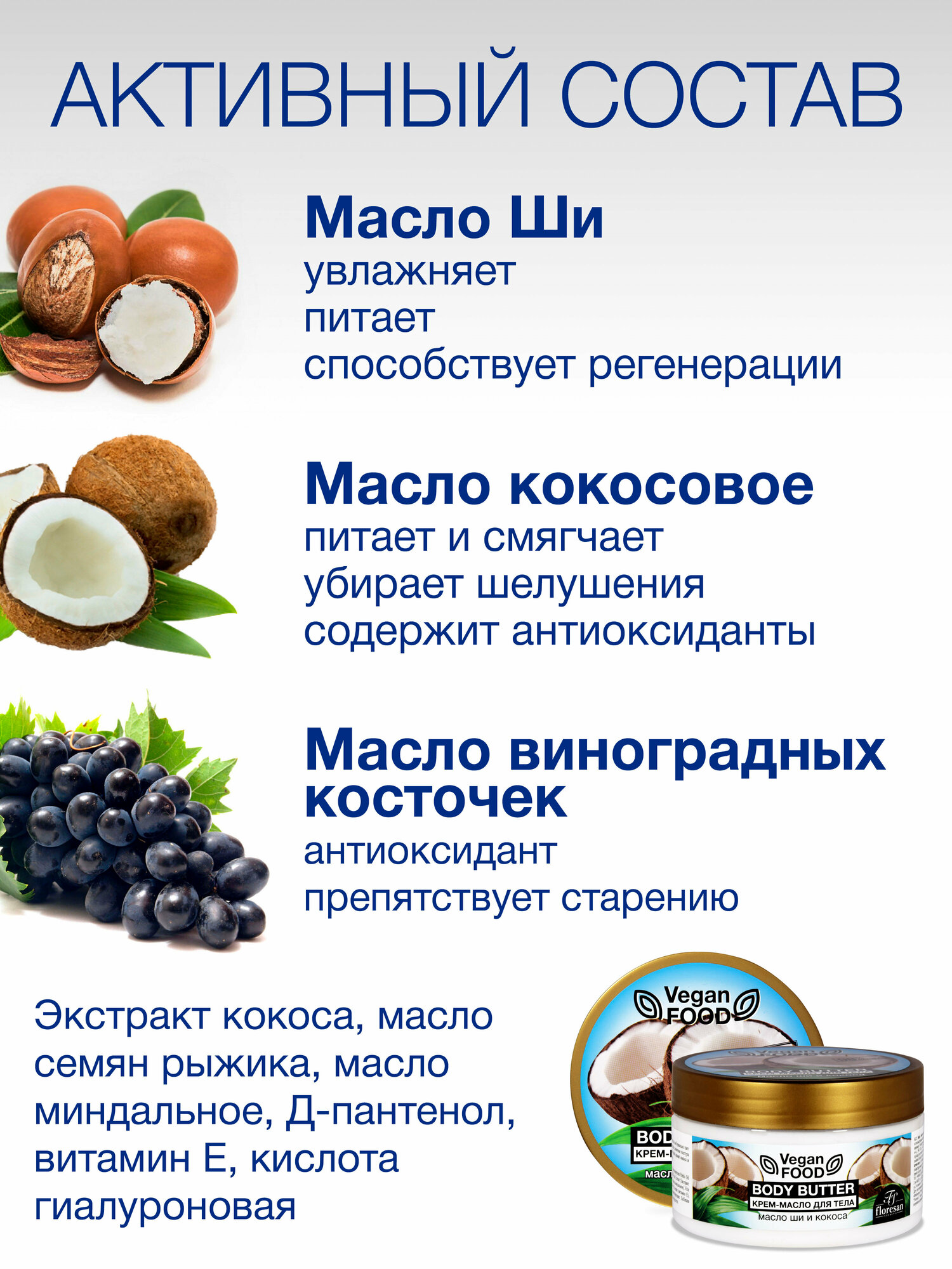 Крем-масло Floresan Body Butter, для тела, питательное, с маслом Ши и Манго, 500 мл
