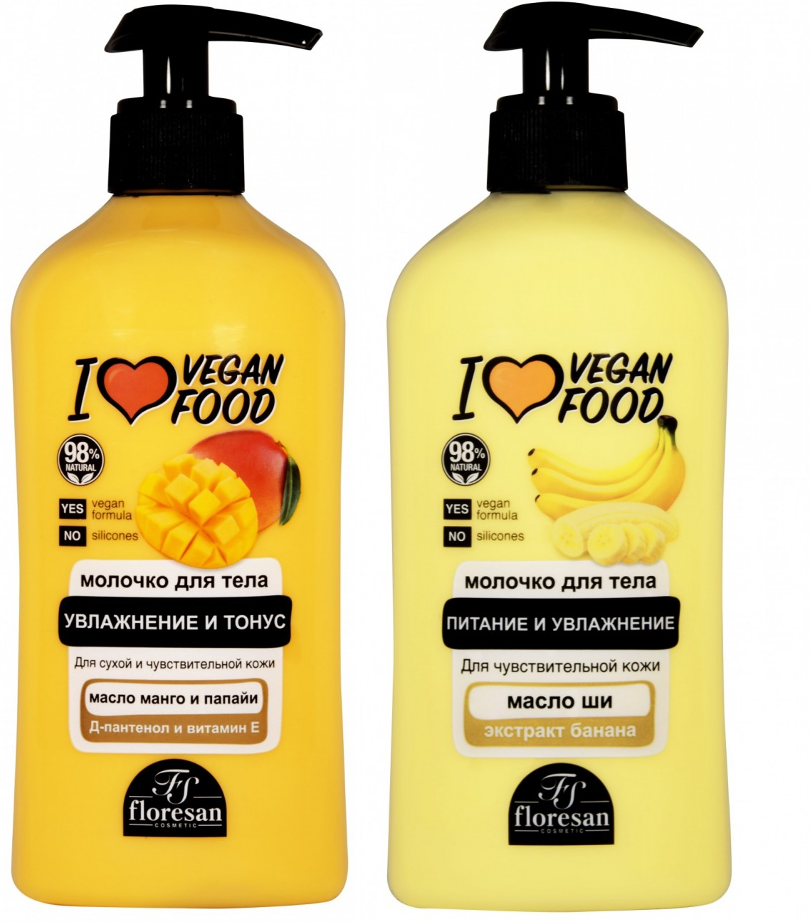 Крем-масло для тела Floresan Vegan FOOD Манго и Банан, 2х250 мл