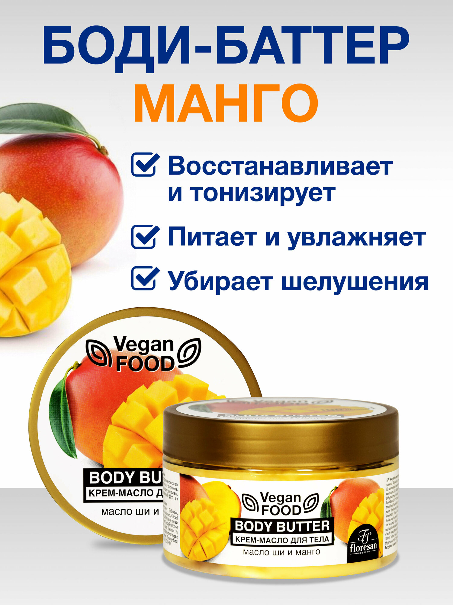 Купить Крем-масло для тела Floresan Vegan FOOD Манго и Банан, 2х250 мл