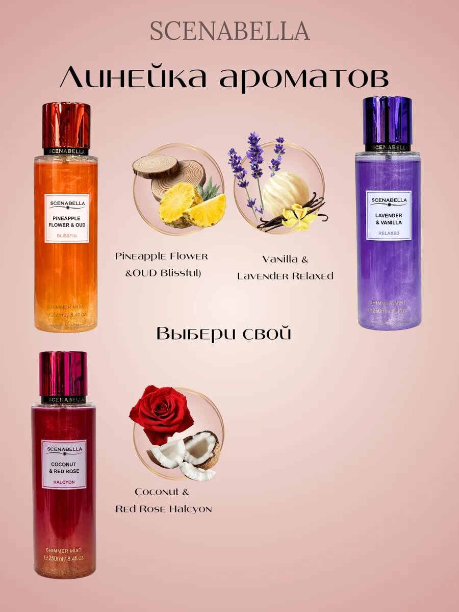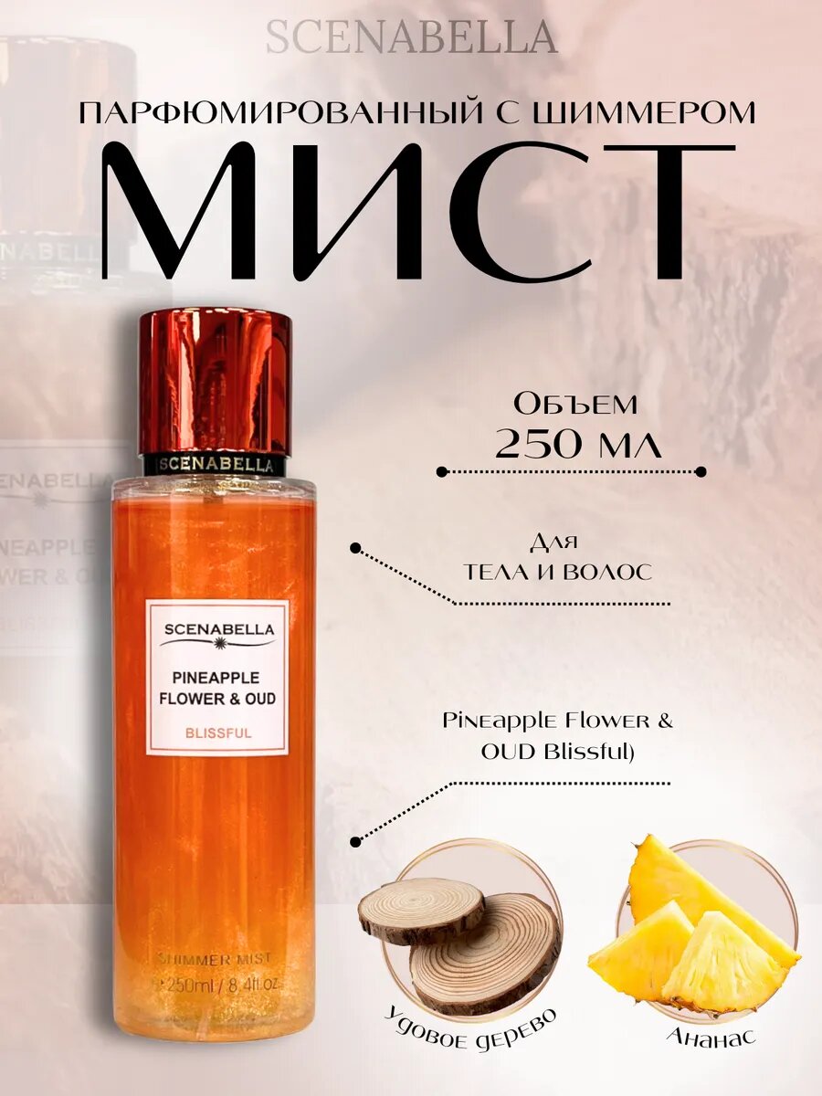 Scenabella Парфюмированный спрей мист для тела и волос с шиммером "Ананас и удовое дерево" 250мл интересное: