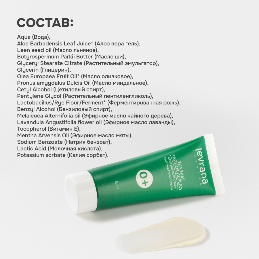 Крем заживляющий универсальный для лица и тела Чайное Дерево, для всей семьи 0+, Levrana, 50 мл интересное: