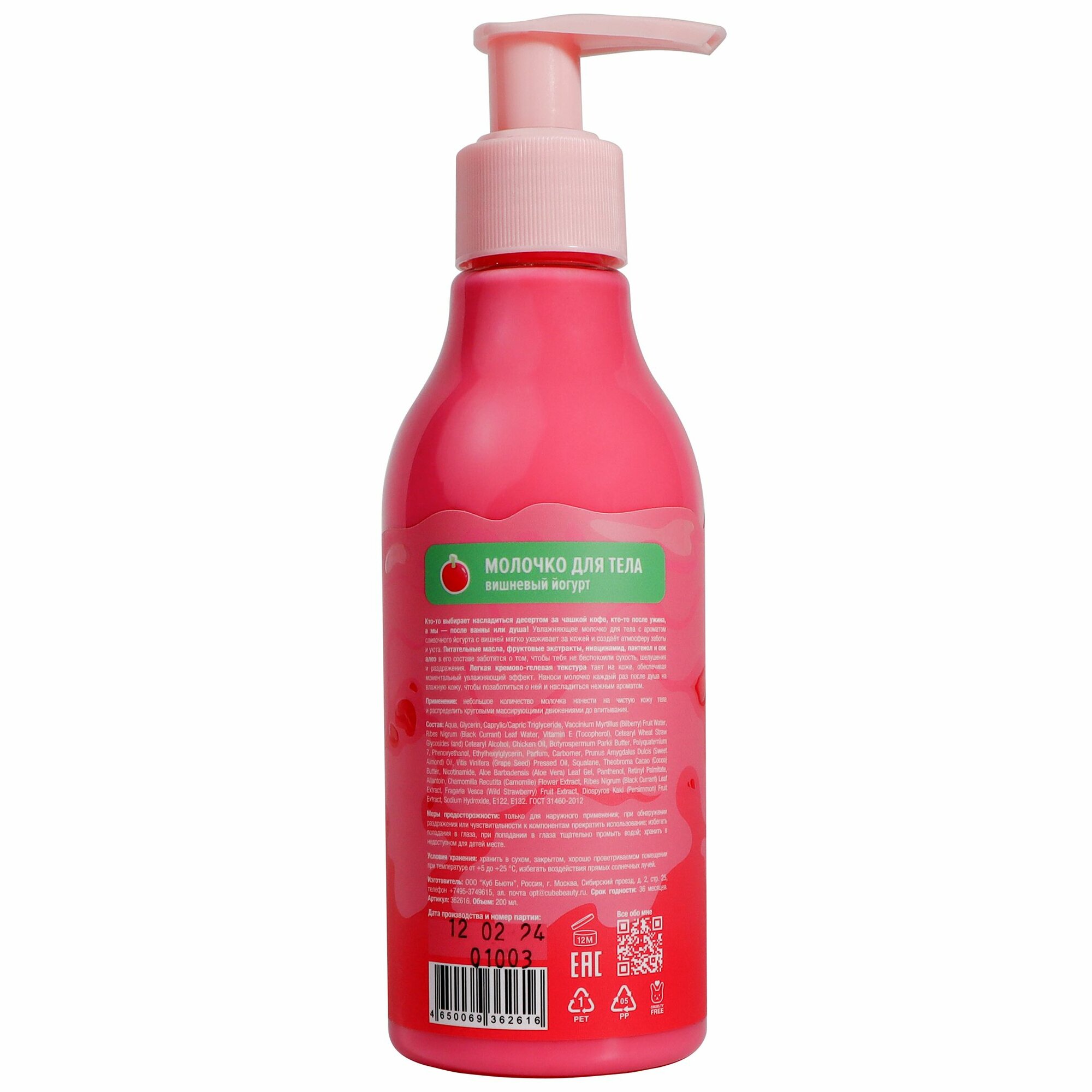 Молочко для тела "Вишневый йогурт", 400 мл, дозатор