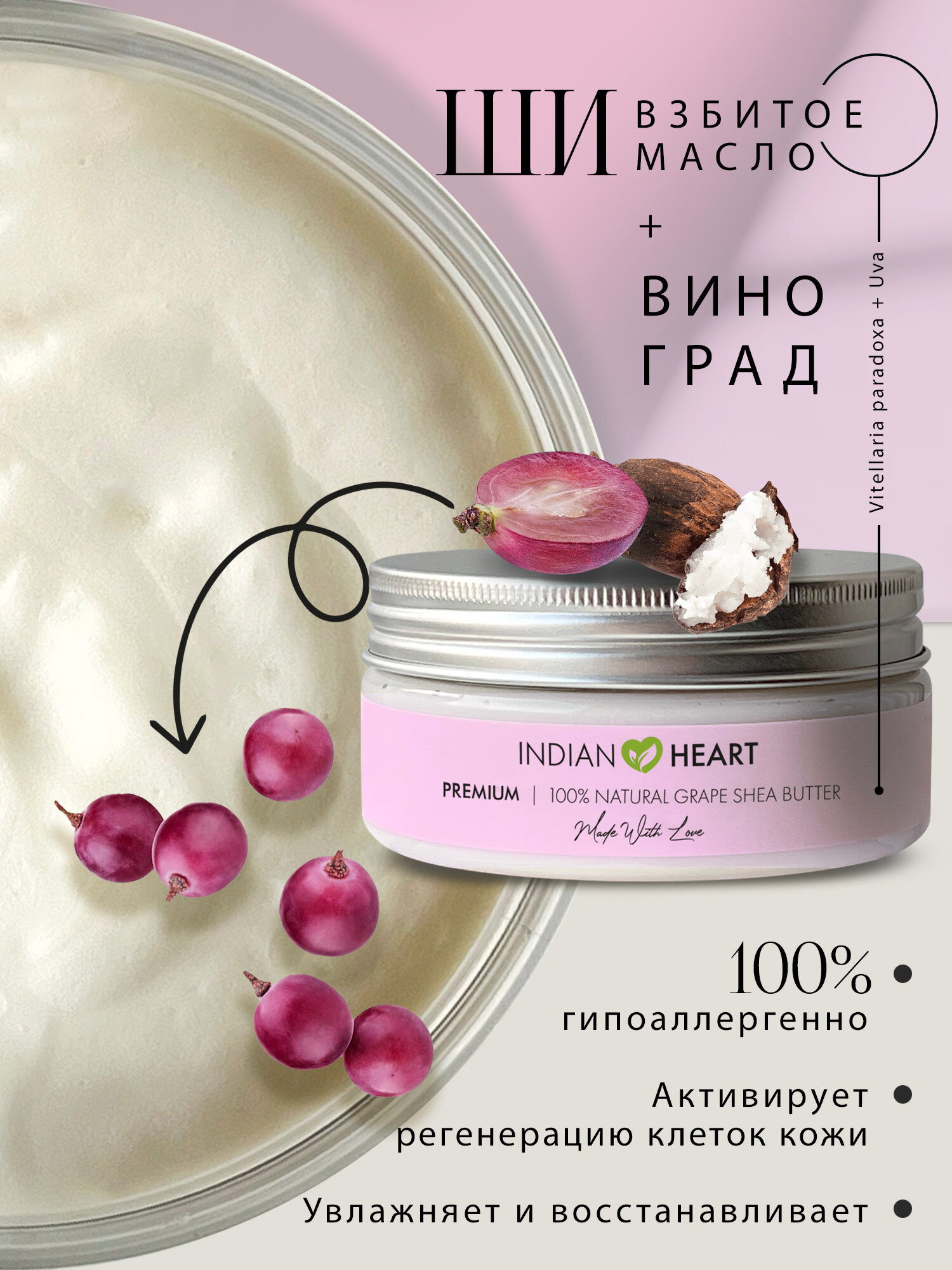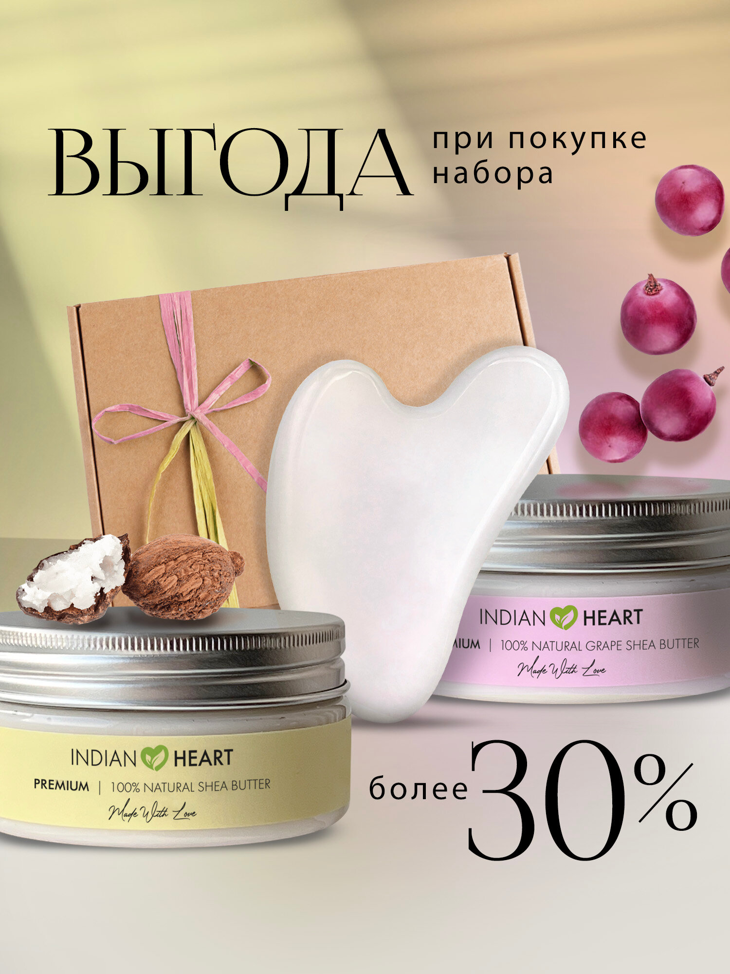 INDIAN HEART Натуральное масло ши, масло ши с виноградом и скребок Гуаша интересное: