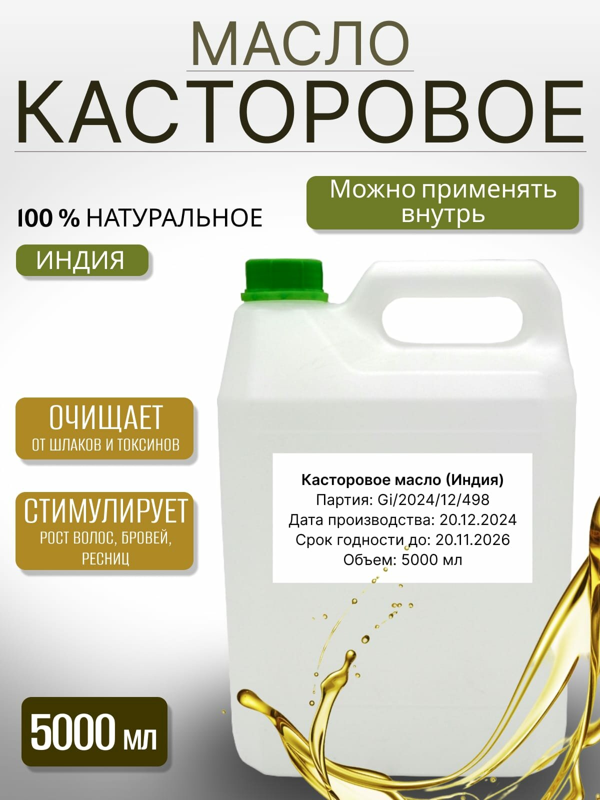 Касторовое масло, очистка от шлаков и токсинов, натуральное, 5 л интересное: