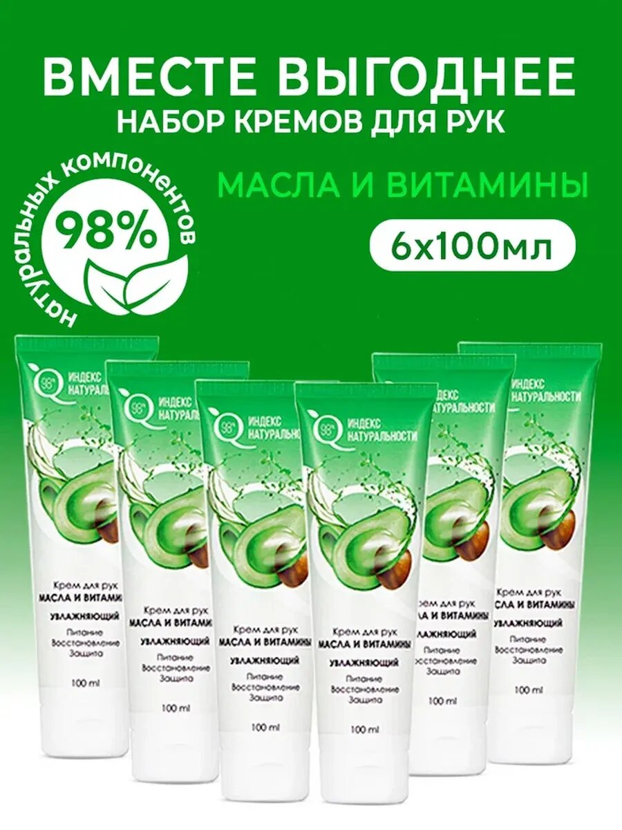 Купить Набор ИНДЕКС НАТУРАЛЬНОСТИ увлажняющих кремов рук Масла и Витамины 6 шт по 100мл